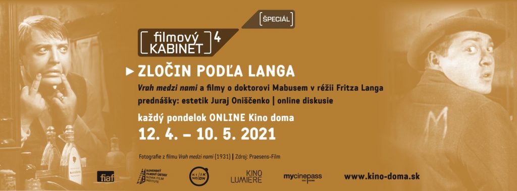 „Pokiaľ by sa v rôznorodej a bohatej filmografii Fritza Langa dala nájsť jednotiaca línia, určite by sa odvíjala od jeho nemeckých filmov o zločine, od filmov Vrah medzi nami a trilógie o doktorovi Mabusem,“ hovorí estetik a filmový teoretik Juraj Oniščenko, dramaturg Filmového kabinetu, ktorý stojí za výberom Langových filmov a bude o nich diskutovať aj s divákmi Kina doma. „Práve v nich sa snúbia všetky kľúčové motívy určujúce charakter Langovej tvorby. Nejde len o posadnutú fascináciu režiséra dokonalým zločinom, ktorý spácha geniálny zločinec a vyšetruje ho detektív, ale najmä o záhadu spoločenského bytia človeka. Tú Lang uchopuje od mytologických a archetypálnych základov (Nibelungovia) a snaží sa ju domyslieť do dôsledkov v svojej predstave mesta budúcnosti ovládnutého technikou (Metropolis).“