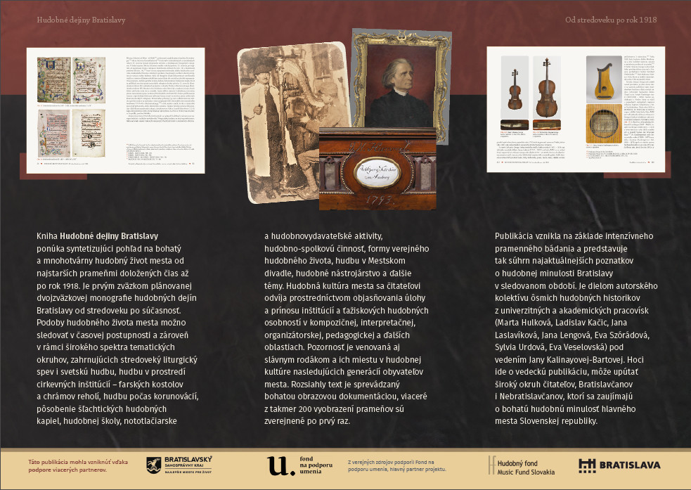 Knižný trh obohatila publikácia – Hudobné dejiny Bratislavy – ponúkajúca syntetizujúci pohľad na bohatý a mnohotvárny hudobný život mesta, od najstarších prameňmi doložených čias, až po rok 1918. Kniha je prvým zväzkom plánovanej dvojzväzkovej monografie hudobných dejín Bratislavy, od stredoveku po súčasnosť.
