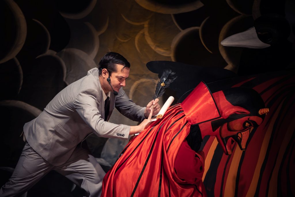 Toto bolo zaujímavé v tom, že vždy sa podvedome snažím pri svojich réžiách držať so scénografiou v úzadí. Keď niekto vie, že režisér je aj scénograf, tak očakáva tak trochu výtvarnej exhibície. Pre mňa je výtvarná stránka dôležitá, ale snažím sa nenechať ju prerásť natoľko, aby bola tým najsilnejším v inscenácii. Vždy sa snažím o balans. Ale tu to bola trochu iná situácia. Vďaka tomu, že sme sa pokúsili o barokové divadlo alebo teda vo zväčšenej mierke rekonštruovať staré marionetové predstavenia, tak výtvarná zložka bola do istej miery dominantná. Tešil som sa na to ako výtvarník aj ako režisér, ale dovolil som si pustiť výtvarníka z vôdzky.