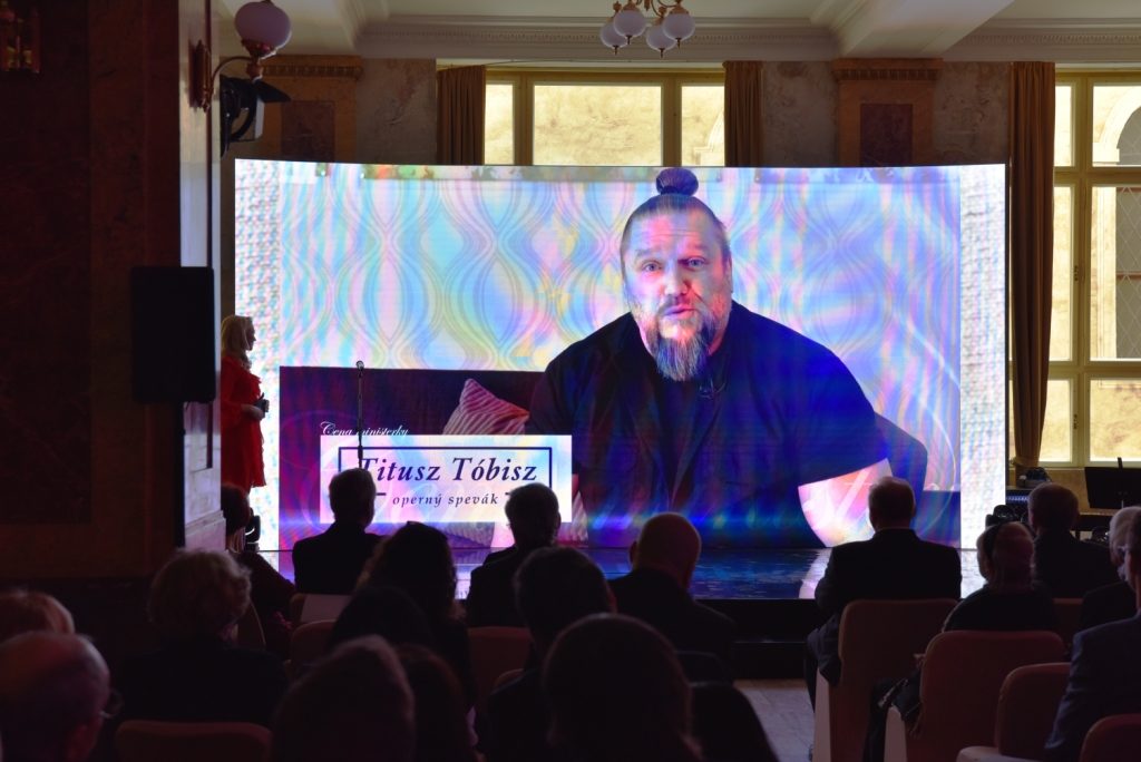 Cenu za výnimočný prínos v oblasti divadla a tanca si z rúk ministerky prevzal operný spevák Titusz Tóbisz, za výnimočné stvárnenie spevácky náročnej postavy Jeana Valjeana v muzikáli BEDÁRI s prihliadnutím na postavy, ktoré na vysokej umeleckej úrovni stvárňuje na opernej scéne Štátneho divadla Košice. Pre Tóbisza je práve rola Jeana Valjeana srdcovou záležitosťou a pri preberaní ocenenia bola jeho ďakovná reč dojímavou, takmer až divadelnou sekvenciou postavenou na symbióze postáv francúzskeho galejníka a operného speváka: "Jean Valjean hovorí v modlitbe: Otče náš, modlitbou chcem Ťa nájsť, vyslyš pár mojich slov. Ako tu stojíme v tomto panteóne, moja modlitba by znela tak, aby Stvoriteľ ďalej chránil našu kultúru a keď sa mi už pred očami začne zahmlievať, aby som to ustál a dokázal poďakovať všetkým, ktorí mi dopomohli k tomu, aby som tu dnes bol a mohol po pódiách behať aj naďalej. Začnúc mojimi rodičmi, otcom, folklórnym tanečníkom, choreografom, mojimi divadlami, mojim materským divadlom, samozrejme Štátnym divadlom Košice, ale aj za túto výnimočnú príležitosť zahrať si znovu Jeana Valjeana, ktorú mi poskytla Nová scéna, a hlavne Ingrid Fašiangová, takže výnimočne ďakujem jej, ďakujem našej ministerke, našej patrónke, ďakujem všetkým, ktorí nosia tento kríž za nás, aby sme sa mohli každý večer sústrediť na svoje výkony a nechať sa unášať umením a rozdávať to, čo je nám dané. Takže veľmi veľmi pekne ďakujem a som nesmierne šťastný," vyznal sa Titusz Tóbisz.