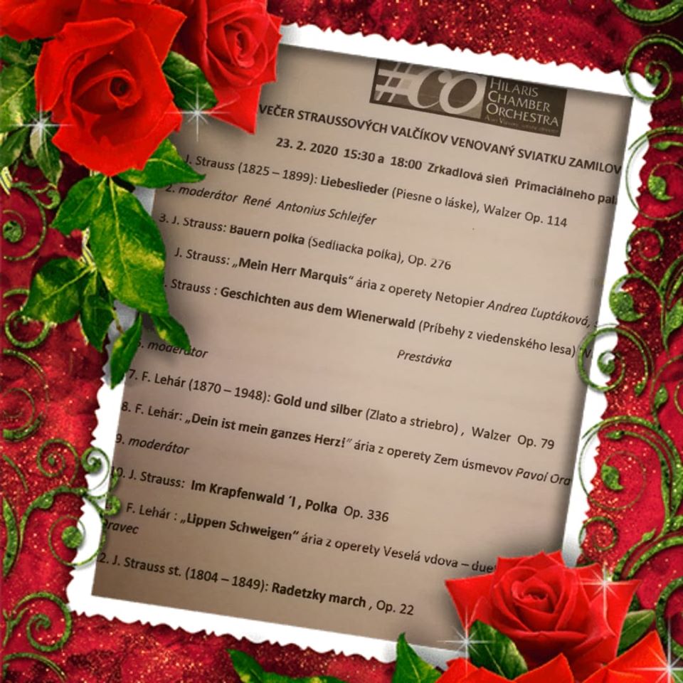 Po dvoch vypredaných januárových koncertoch, orchester Hilaris Chamber Orchestra pripravil ďalšie dva koncerty - nielen pre zamilovaných. Publikum bude opäť spievať a tentoraz aj tancovať. Hilaris Chamber Orchestra priniesli do Bratislavy tradíciu kultivovanej viedenskej zábavy. Už pred dvoma rokmi...