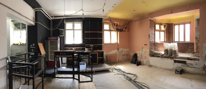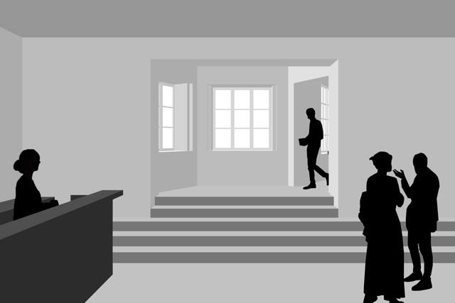 Súčasťou rekonštrukcie bude aj nákup nového mobiliáru (stoly/stoličky), vytvorenie malého pódia, odhlučnenie okien a inštalácia zvukotesných dverí. Vďaka šikovným dispozičným zmenám sa aj náš vstupný priestor pred novou malou sálou celkovo zväčší, prevzdušní a zmodernizuje. Výrazným pozitívom bude aj sprístupnenie nových toaliet pre návštevníčky a návštevníkov priamo dostupných z úrovne kaviarne a malej sály.