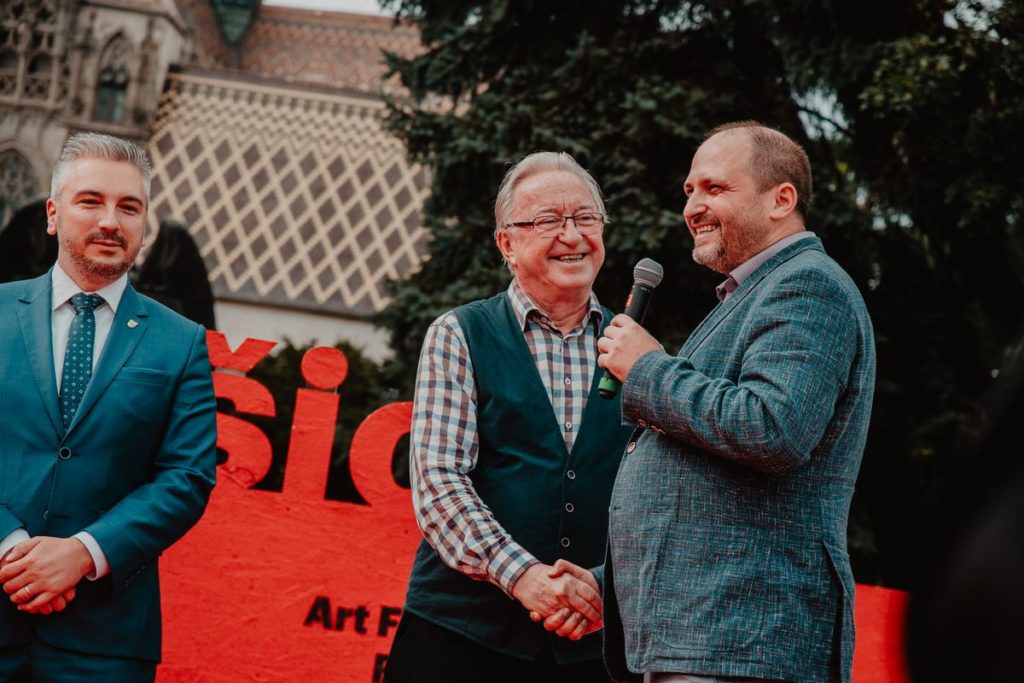 Na košickej Dolnej bráne v piatok 21. júna 2019 prevzal z rúk Milana Lasicu ocenenie Hercova misia legendárny český herec Jiří Lábus.
