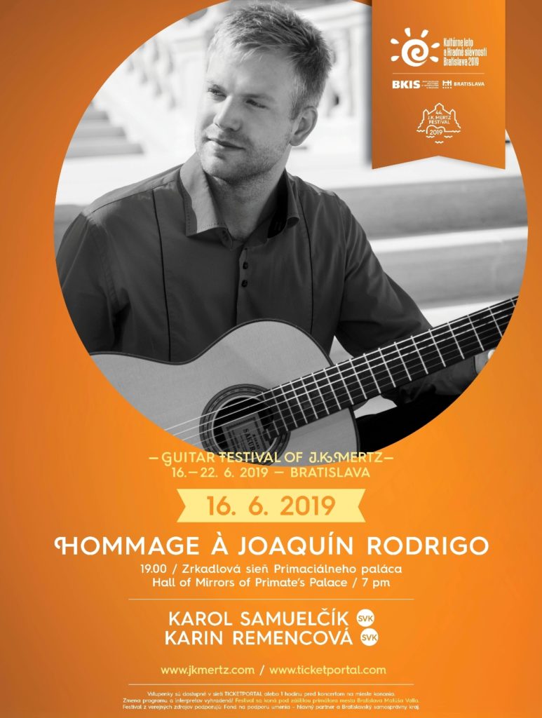 V júni budete mať koncert aj na Slovensku – v Zrkadlovej sieni Primaciálneho paláca - Hommage à Joaquín Rodrigo. Čím Vám učaroval tento španielsky skladateľ? Joaquín Rodrigo patrí ku pilierom gitarovej hudby 20. storočia a tento rok sa po celom svete spomína na jeho 20. výročie úmrtia. Výnimkou teda nie je ani Mertzov festival a som rád, že jeho hudbu môžem uviesť práve ja. Vždy som mal k jeho dielu blízko, charakteristické harmónie, španielske idiómy, temperament... V repertoári mám viaceré jeho kompozície.