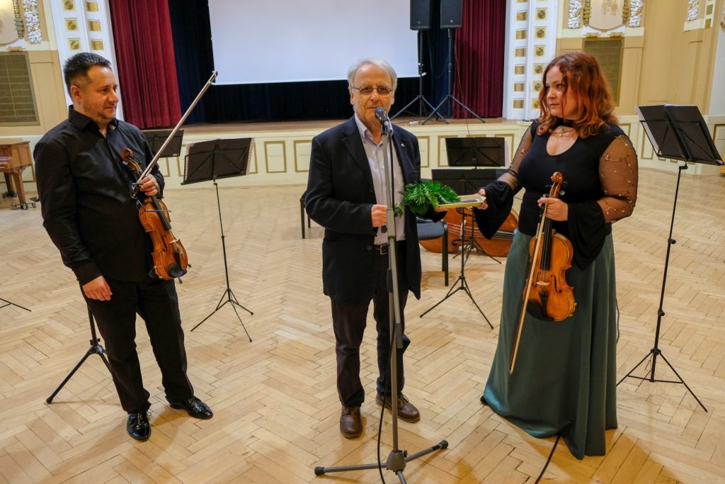 Po prestávke však nasledoval krst CD, na ktorom nájdeme diela od Čajkovského a Šostakoviča - spomínané kvarteto A dur, ktoré si upravili pre sláčikový orchester samotní členovia HCO a na Slovensku znelo toto dielo v premiére. Predchádzala tomu komunikácia so Šostakovičovou rodinou, ktorú zabezpečil muzikológ a bývalý dramaturg Slovenskej filharmónie, Ivan Marton. Logicky, padla naňho aj úloha krstného otca, ktorej sa zhostil so šarmom sebe vlastným a príhovorom, ktorý mal v sebe ľudskosť, humor a zároveň vyjadril aj pochvalné slová na adresu orchestra. Krstilo sa vetvičkou – našťastie, už sa upustilo od oblievania nosičov šampanským či slivovicou (vždy mi vŕta v hlave, kto tento nedôstojný spôsob krstu vymyslel) a CD bolo na svete! Obecenstvo si mohlo pozrieť aj krátku dokrútku o tom, ako vznikalo CD, kde sa divákom prihovorila manažérka Anežka Kara a líder orchestra Alan Vizváry, ktorý vyzdvihol obe diela a zároveň ich nezabudol uviesť v súvislostiach so životmi týchto oboch velikánov, ktoré tak významne ovplyvnili ich tvorbu.