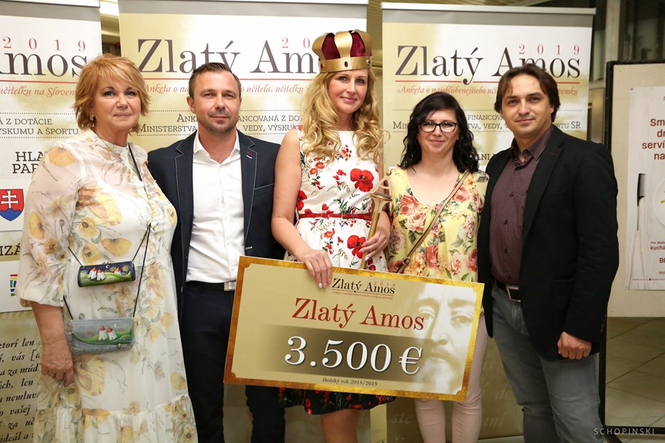 A záverom sa opäť vráťme k Zlatému Amosovi: je prekvapujúce, ale okrem samotných spoluorganizátorov, ktorými sú samosprávne kraje, Ministerstvo školstva a ďalšie inštitúcie, sa súkromné firmy veľmi nehrnú podporiť takúto akciu, ktorá má takýto veľký ľudský rozmer, vyjadruje aj myšlienku vážiť si profesiu učiteľa a je veľmi dôstojnou akciou. Zlatým partnerom, ktorý významne finančne prispel na anketu Zlatý Amos, bola spoločnosť Rebuy Stars. Jej riaditeľ Vadim Zmarko sa vyjadril, že vedia, že takéto akcie je náročné organizovať, preto sa rozhodli podať pomocnú ruku. Ako vnímaš túto podporu a prečo podľa Teba iné firmy, ktoré by na to aj mali, nepodporia takúto akciu? Asi majú málo uvedomelé vedenie, veď odjakživa platí, že: "Koreňom všetkého zla, je nedostatok poznania!”