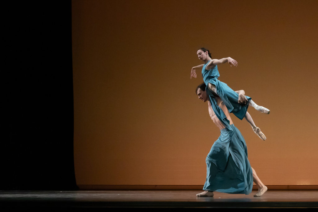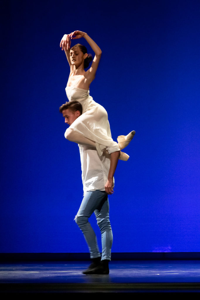 Impresionista Maurice Ravel a jeho Klavírny koncert G dur bol hlavnou inšpiráciou pre choreografa Adriana Ducina, ktorý je študentom magisterského štúdia KTT, študijný program Tanečné umenie – Choreografia, Choreografia baletu. Ravelove excelentné inštrumentačné schopnosti, jeho cit pre zvukovú farebnosť a z hľadiska formy odľahčené koncerty plné moderných prvkov a klavírnej virtuozity umožnili Ducinovi vytvoriť romanticky ladenú choreografiu tanca Mare. Na pódiu ju stvárnili manželka Adriana Ducina Ilinca – demi sólistka Baletu SND a Adrian Szelle – člen Baletu SND. Podľa slov choreografa, s ktorým sme sa zhovárali (rozhovor s ním vám prinesieme počas tohto týždňa), to nebola prvá choreografia, ktorú spolu tento pár tancoval a Ducina nikdy nesklamali. Harmónia medzi nimi fungovala aj počas tohto večera, kedy stvárnili na Ravelovu farbistú hudbu myšlienku „Sen sa stáva realitou, realita snom. Čo je skutočné?“. Výrazovo a emocionálne silné tanečné predstavenie bolo pre divákov príťažlivé, pretože prinieslo klasiku a zároveň myšlienku, ktorá oscilovala medzi nebom a zemou.