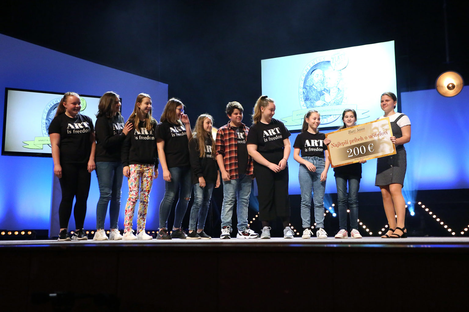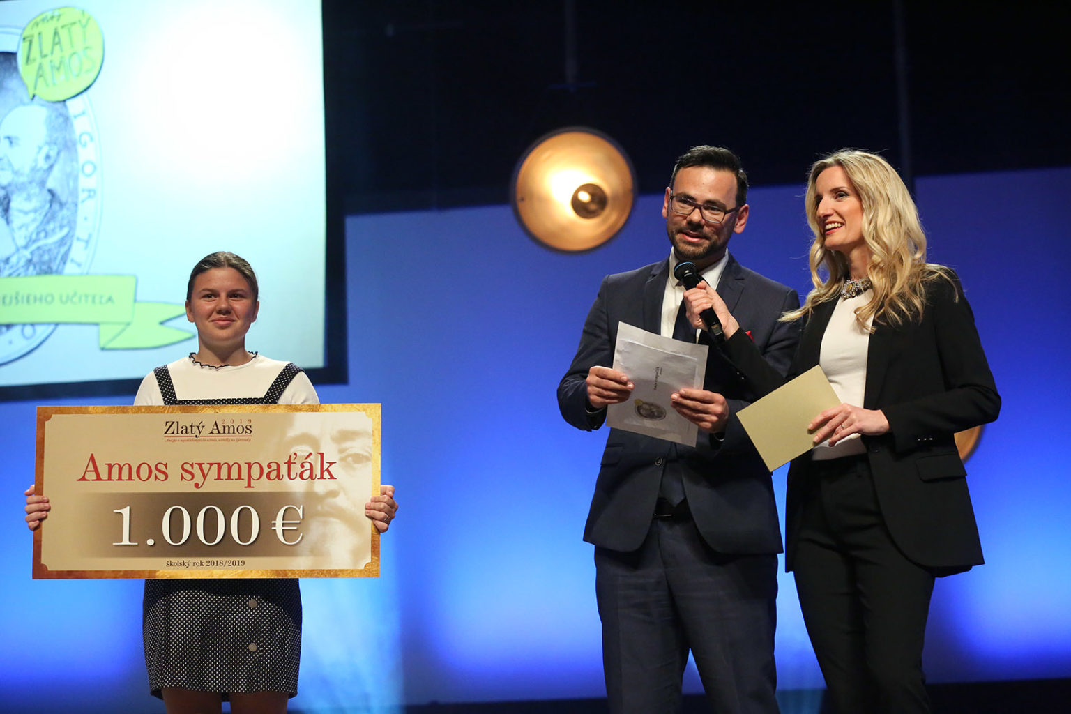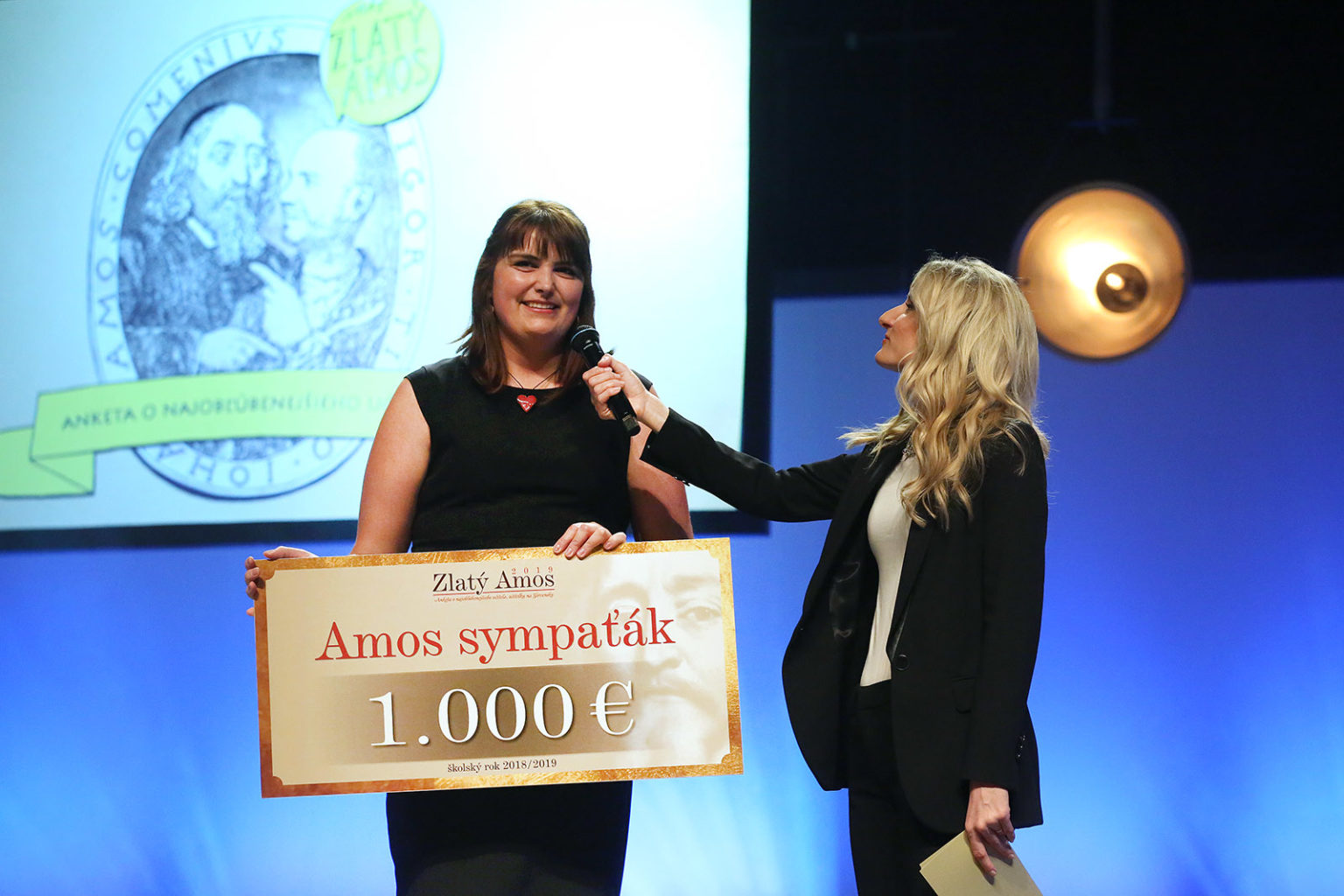 Eva Krabáčová, ktorá si odniesla titul Amos sympaťák bola sama prekvapená, koľko ľudí jej v publiku počas včera fandilo: „Mám skvelú triedu a skvelých rodičov a my sme sa vzájomne našli. Úprimne verím v to, že život vám donesie do cesty ľudí, s ktorými si rozumiete a s touto triedou sme si sadli vo všetkom, sme na jednej vlne. Príjemne ma prekvapil takto vyzbrojený fanklub v hľadisku, lebo o ničom som nevedela. Cena ma veľmi potešila, lebo je to pre mňa veľká spätná väzba od rodičov, žiakov a možno aj skautov, keďže som aj skautka. Mám tie najlepšie deti, vždy bojujem proti tvrdeniam, že dnes sú deti, s ktorými sa nedá vydržať. Dá, sú úžasné, len to v nich treba hľadať a to ma baví na tej práci najviac. V každom dieťati je niečo iné, jedinečné a deti sú vo vnútri dobré, len to v nich treba nájsť a podporovať. Je najväčšou chybou, keď to ten učiteľ nerobí.“