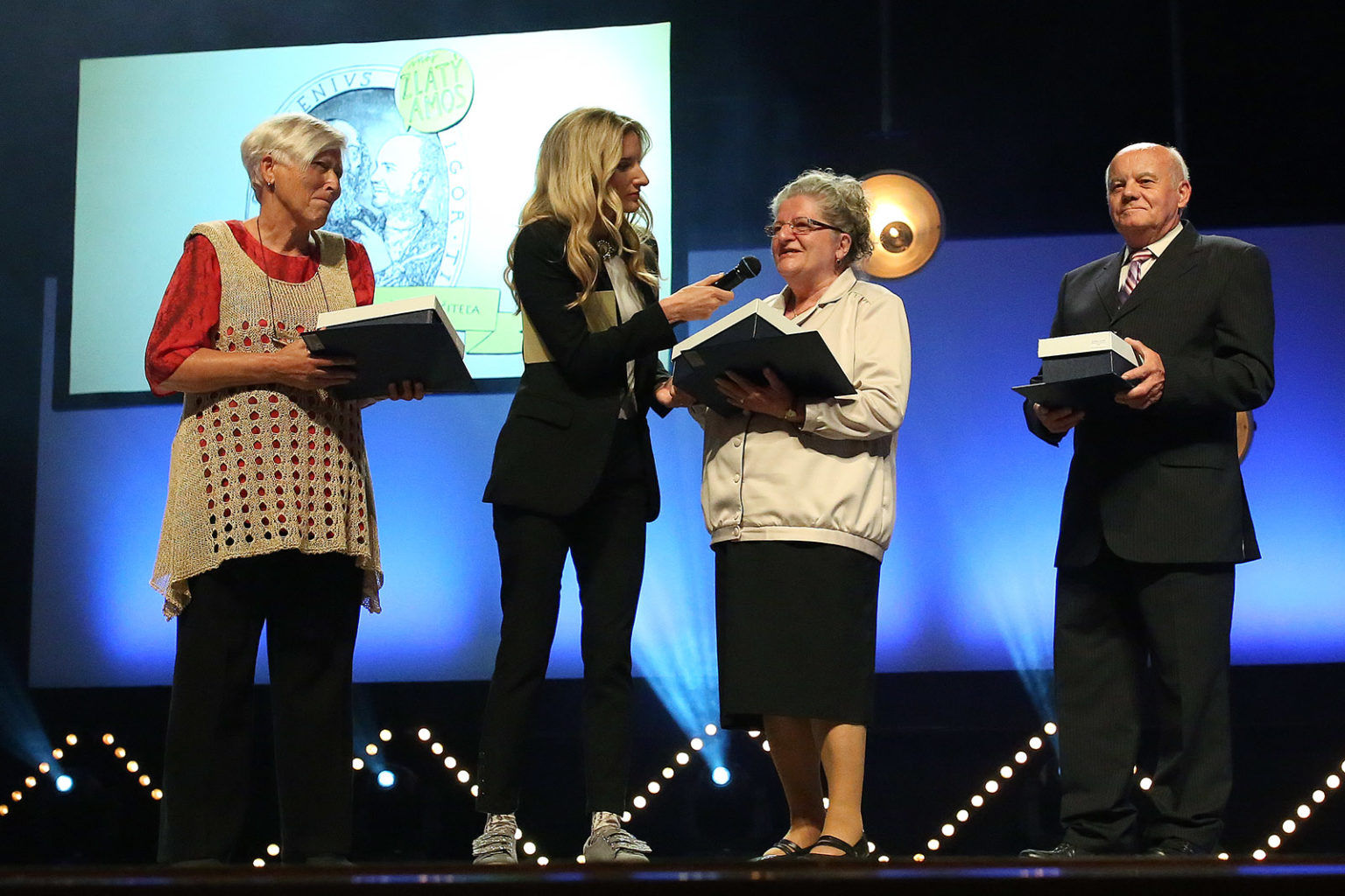Akú známku dala víťazka Zlatého Amosa ministerke školstva?