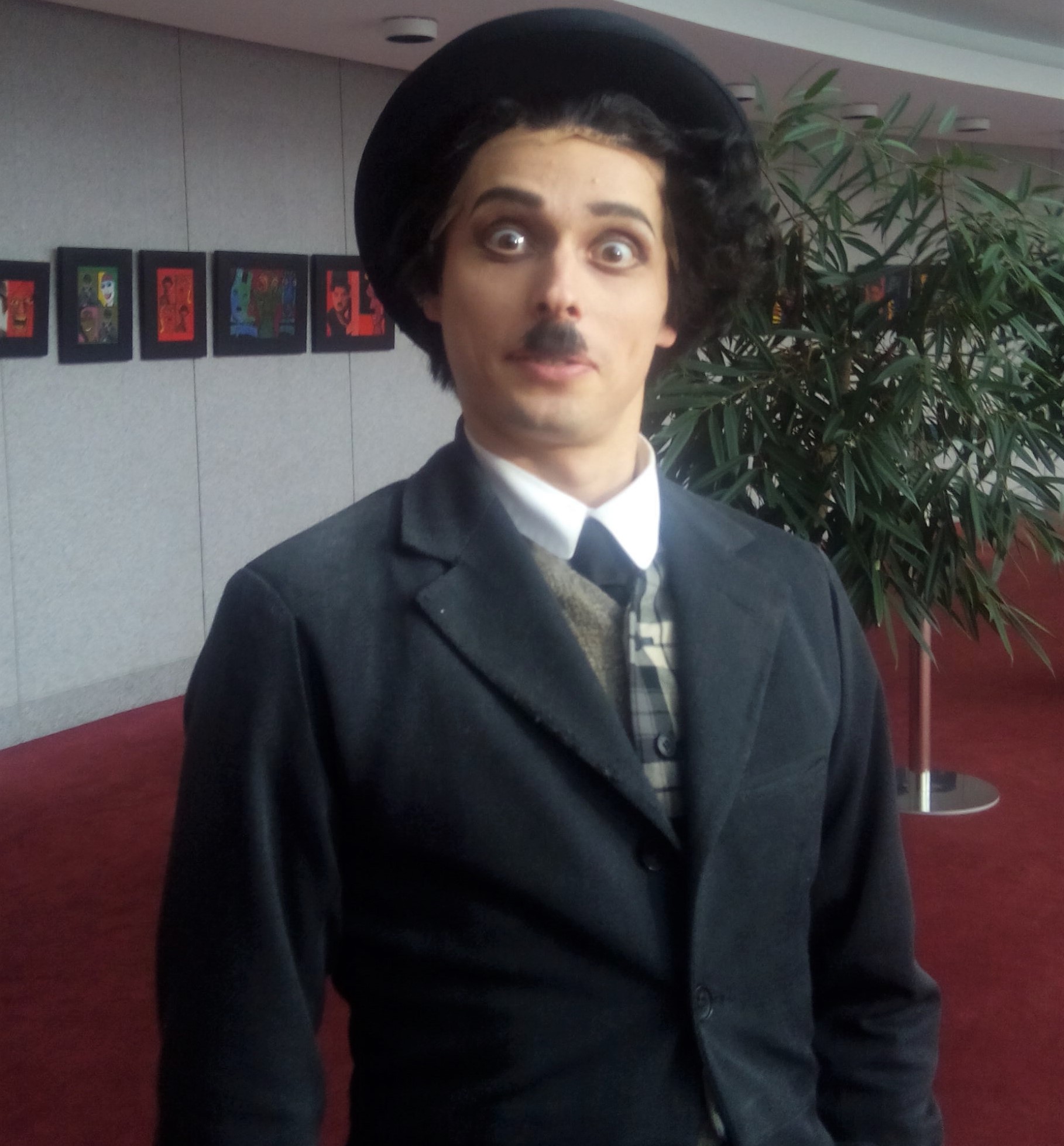 Na tlačovke nechýbal ani tanečník, ktorý stvárnil Chaplina - Konstantin Korotkov, ktorý prišiel v kostýme. No schválne - nájdite 5 rozdielov medzi ním a samotným legendárnym Chaplinom...