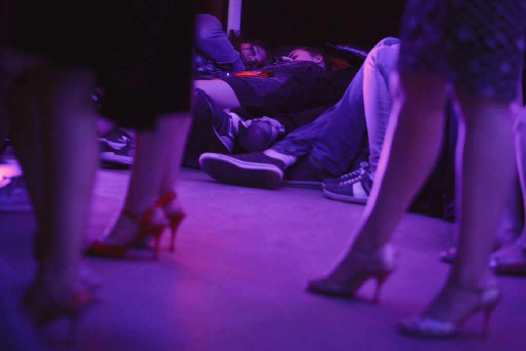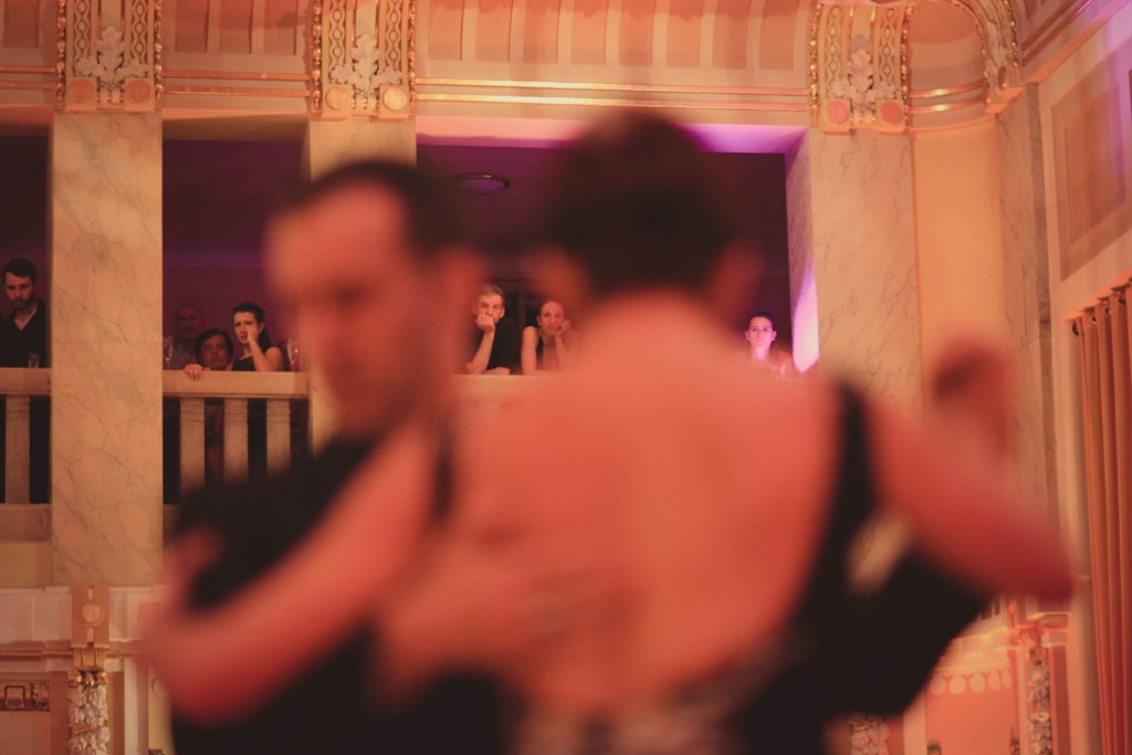 Dovolím si byť v úvode trochu osobná. Vždy som túžila tancovať tango, len som nikdy nemala na to vhodného partnera, ani čas. Ale keď po niečom veľmi túžite, pochopíte, že realizácia vlastných snov nie je závislá od žiadneho partnera a čas si odrazu vedome nájdete. Okrem tango drogy je pre mňa silnou drogou divadlo a asi najlepšia vec, čo sa mi v rámci profesie mohla stať, bolo vykonávať ju na mieste, ktoré zbožňujem – v divadle. To som ešte netušila, že svoju profesiu kunsthistoričky využijem aj vo voľnočasovej aktivite – v tangu. Takže keď sa ma Deniz Hazir z Tango Vida na jednej z hodín spýtal, či im s jeho manželkou Luckou nepomôžem zrealizovať výstavu fotografky, ktorá fotí tango, neváhala som ani sekundu. Tango Vida je mimoriadne familiárne zoskupenie fanatikov tanga a ponoriť sa do tanga alebo do výstavy o tangu sa mi zdalo v tom momente prirodzené ako dýchanie. A tak sme tu – s výstavou Marty Kossakowskej Zavreté oči (ponor do tanga), ktorá vznikala na diaľku a vo vzduchu niekde medzi jej letmi medzi Amsterdamom, Varšavou a Kyjevom, cestami Hazirovcov do Belehradu, Lisabonu a Milána, cez denné maily a nočné mesindžre - z letísk, áut aj postelí. Vďaka tejto vzdušnej a virtuálnej komunikácii sa napokon aj vy dnes možete spolu s nami ponoriť do tanga.