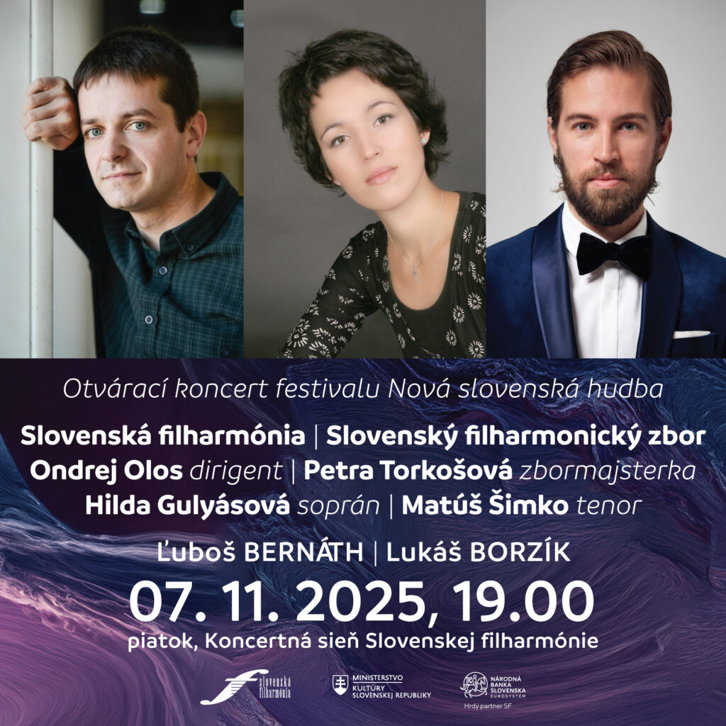 Úvod mesiaca bude patriť súčasnej hudbe. Otvárací koncert 33. festivalu Nová slovenská hudba zaznie v Koncertnej sieni SF v piatok 7. novembra o 19.00. Pred orchester Slovenská filharmónia a Slovenský filharmonický zbor (zbormajsterka Petra Torkošová) sa postaví Ondrej Olos, talentovaný slovenský dirigent, ktorý od aktuálnej sezóny zastáva post stáleho hosťujúceho dirigenta Slovenskej filharmónie. Dirigovanie študoval na Konzervatóriu v Žiline a na brnianskej Janáčkovej akadémii múzických umení. Pravidelne spolupracuje s orchestrami na Slovensku aj v Čechách a pôsobí aj pedagogicky. Okrem toho je vyhľadávaným klaviristom a komorným hráčom.