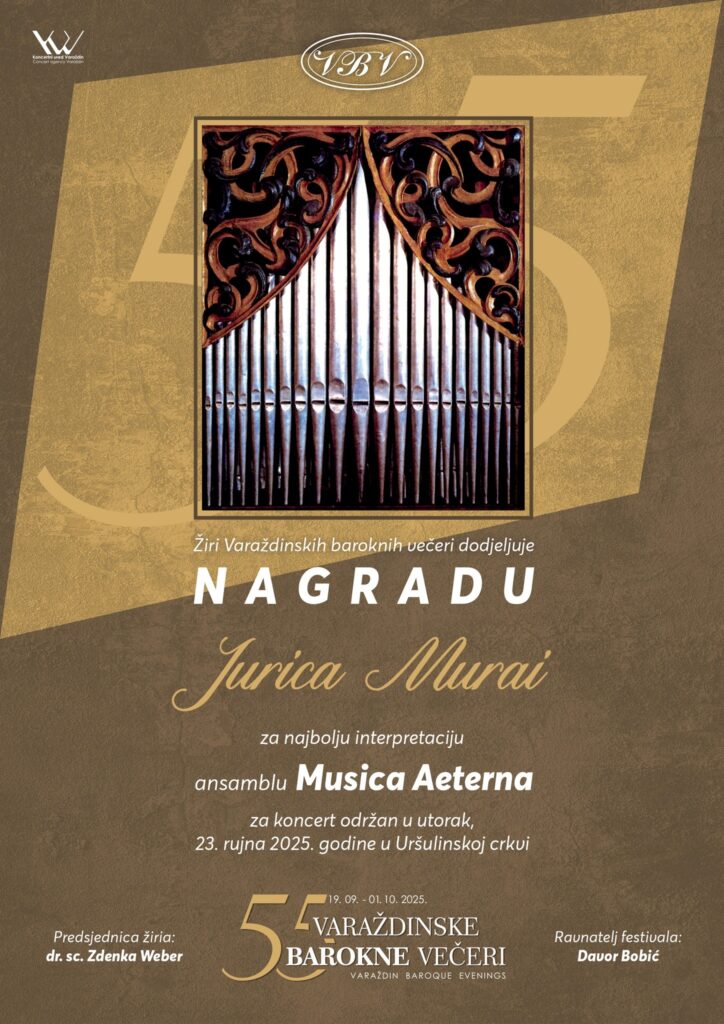 Súbor starej hudby MUSICA AETERNA, pod vedením jeho umeleckého vedúceho Petra Zajíčka, vystúpil na 55. ročníku medzinárodného hudobného festivalu VARAŽDINSKE BAROKNE VEČERI. Na programe koncertu 23. septembra 2025 v Uršulínskom kostole boli operné árie, duetá v podaní sólistiek Gabiely Eibenovej...