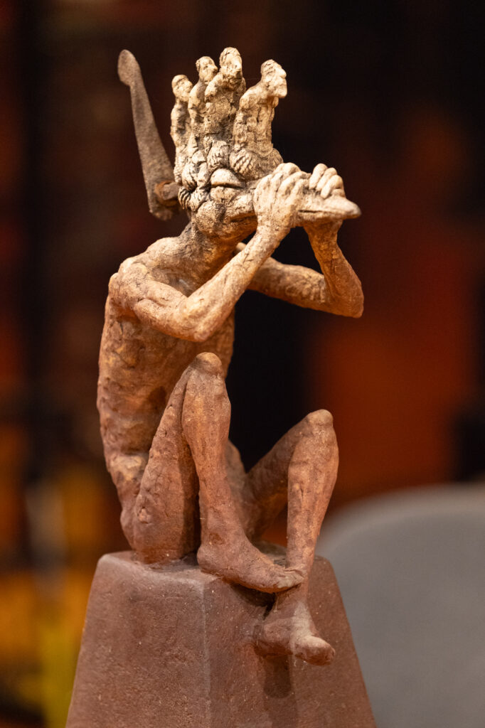 V jedinečnom svete imaginácie Vladimíra Oravca sa pred nami otvára svet pitoreskných bytostí, akási fantastická zoológia v duchu múdreho slepca argentínskej literatúry Jorge Luis Borgesa. Nevšedný beštiár stredovekých katedrál, svet skamenený a akoby zakliaty, predsa však neskutočne dynamický, živý a sugestívny. Každá vystavená plastika rozpráva svoj príbeh – biblický, mýtický, stredoveký, barokový, uhorský i slovenský... Vždy je to však príbeh zeme a človeka, ktorý ju od nepamäti pretváral, banským náčiním dobíjal a tvaroval k obrazu svojmu.