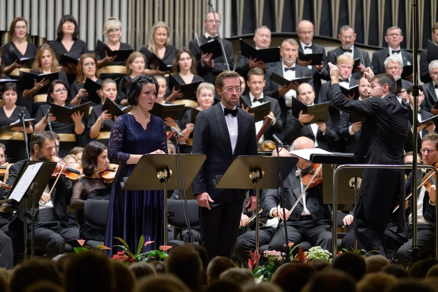 V druhej časti večera zaznela Symfónia Matka pre soprán, tenor, miešaný zbor a orchester od Lukáša Borzíka. Lepšiu dramaturgiu sme si ani nemohli priať. Všetci dojatí sa mali čas na chvíľu nadýchnuť cez prestávku, no zrejme by to bolo ešte efektnejšie bez nej. Len si to predstavte. Dve ohromujúce, zároveň tematicky a filozoficky náročné diela, ktoré vás len tak mimovoľne donútia k sebaspytovaniu. A bez pauzy!