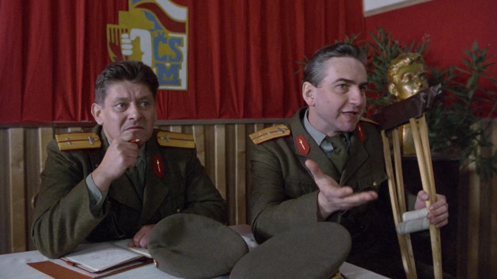 V „Tankovom práporu“ (1991), natočenom podľa románu Josefa Škvoreckého, sledujeme prostredie československej armády v päťdesiatych rokoch očami mladých vojakov základnej služby. Príbeh sa sústreďuje na Dannyho Smiřického, ktorý sa spolu s ďalšími odvedencami potýka s absurditami vojenského života i rozporom medzi oficiálnou ideológiou a realitou kasární. Miroslav Donutil tu stvárnil nadporučíka Růžičku. K obsadeniu do role sa dostal úplnou náhodou: „Práve som dostal angažmán do Národného divadla. Potkal som producenta Ježka na Národní třídě a on povedal: ‚Točíme Tankový prápor. Nechceš si zahrať, keď už si tu v Prahe?‘ Poslal ma do produkcie a tam zostala jedna rola — nadporučík Růžička. Tú som dostal a bolo to.“ Filmový maratón uzavrie film „Tankový prápor“ 8. februára o 00:05.
