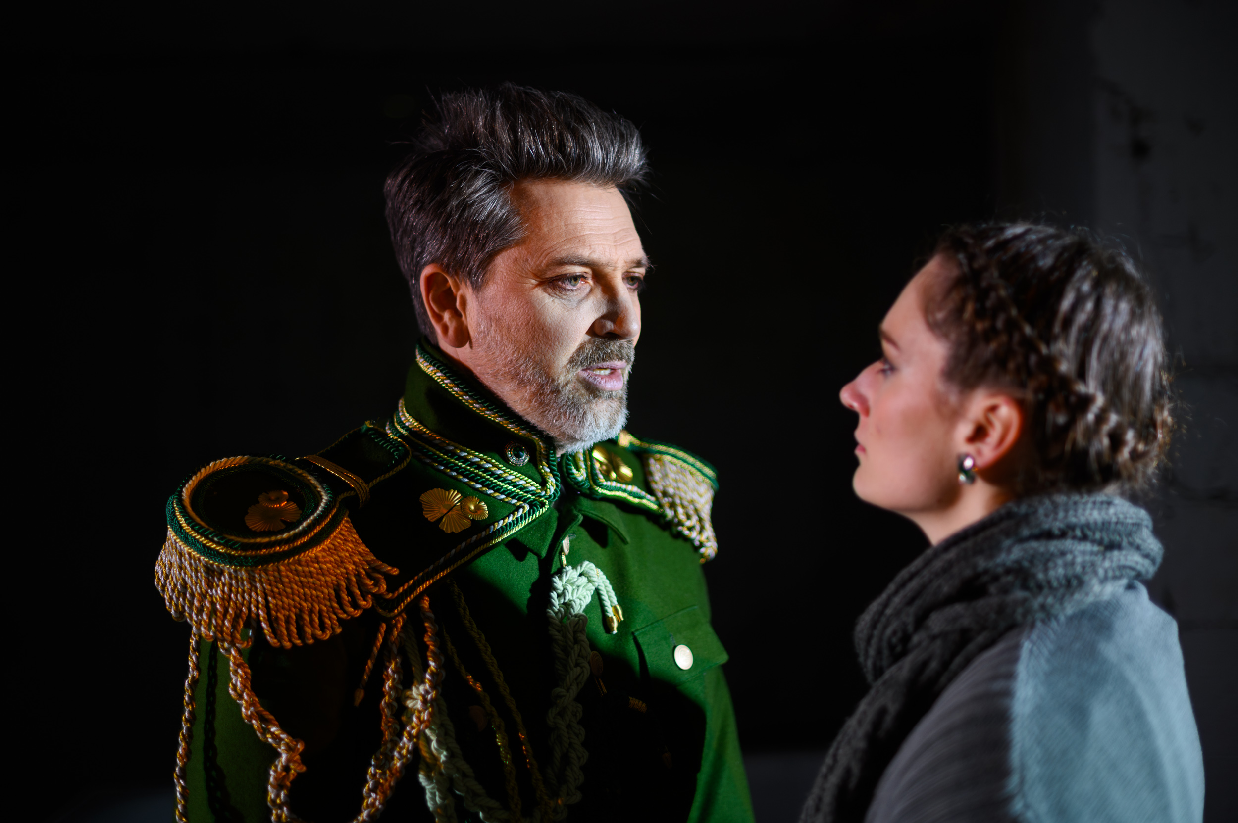 „Chceli sme reflektovať vzťah Slovákov k Rusku, a tak hovoriť aj o našom pohľade, o našom vzťahu. Zároveň aj o vzťahu Slovákov k sovietskej okupácii v minulosti. Ako si nedokážeme pamätať, vnímať to, čo sa tu dialo? A ako môžu ľudia akceptovať, že sa orientujeme na Rusko, napriek okupácii, ktorá tu bola? Keď sa človek nad touto témou zamyslí, uvedomí si, že je veľmi kontroverzná,“ hovorí v rozhovore pre bulletin k inscenácii dramaturgička Katarína Jungová a otvára tak aj otázku, čo formuje kolektívnu pamäť ľudí a ambivalentný vzťah k ruskej prítomnosti. Spolu s režisérkou vychádzali pri úprave hry z možností priestoru bývalého podzemného krytu, ktorý pôsobí surovo až nehostinne, pričom sám v sebe nesie vojenskú tému.