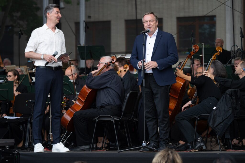 Open air koncerty majú vždy jedinečný charakter. Nie sú viazané na tradičné koncertné priestory, ľudia sa nemusia prispôsobovať striktnému „režimu“ – čas, oblečenie, komfort, voľba publika, žánrové preferencie, pri týchto koncertoch nehrajú rolu. To, že ide o nádhernú tradíciu podujatí pod holým nebom, vyzdvihol v úvode aj generálny riaditeľ Slovenskej filharmónie Marián Turner. Počasie Slovenskej filharmónii prialo, aj keď to v prvej polovici nedeľňajšieho dňa nevyzeralo ideálne, no napokon aj mraky cúvli pred týmto projektom. „Robíme tieto koncerty spoločne s BKIS ako dar Bratislavčanom, obyvateľom tohto mesta. Máme výborné ohlasy,“ povedal Marián Turner, ktorý dodal, že aj vďaka týmto koncertom sa im zvýšil počet abonentov. Pozval všetkých aj na ďalšie septembrové „chuťovky“: v rámci festivalu Symfónia umenia Slovenská filharmónia vystúpila s opernou superstar Jonasom Kaufmannom a budú účinkovať aj s charizmatickým talianskym tenoristom Andreom Bocellim.