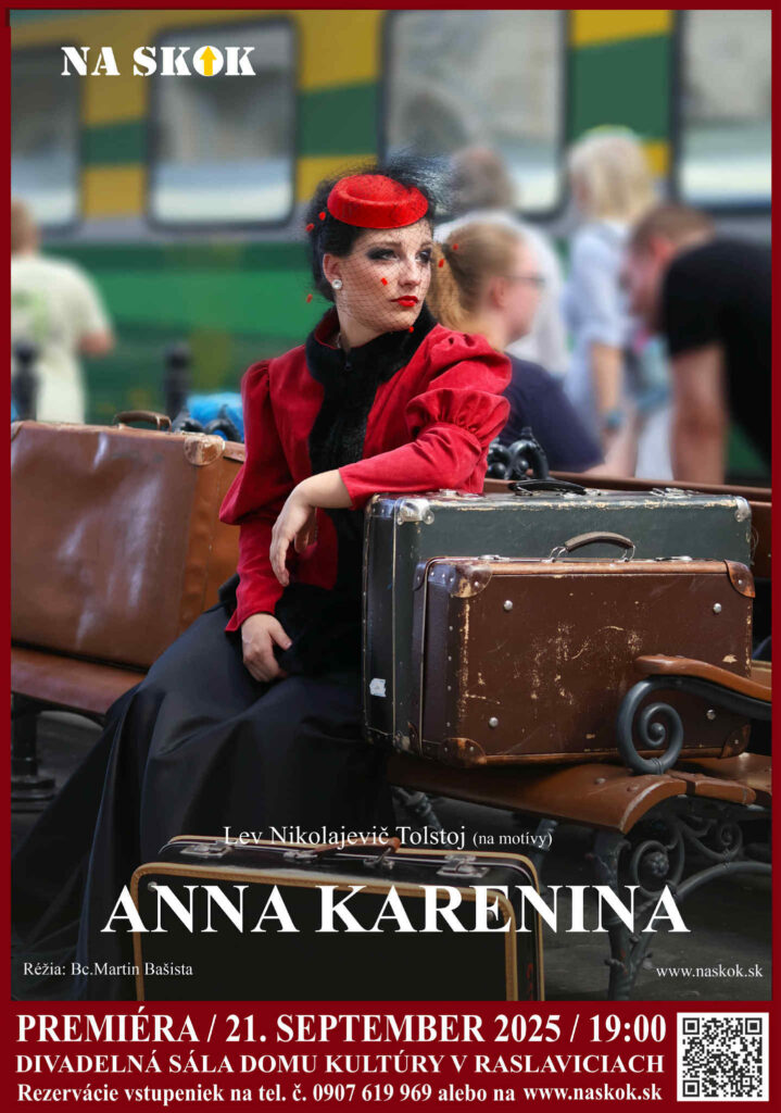 Divadlo NA SKOK uvedie 21. septembra 2025 o 19:00 v Divadelnej sále domu kultúry v Raslaviciach premiéru inscenácie Anna Karenina. Nový titul rozšíri profil divadla, ktoré sa vo svojej dramaturgii dlhodobo sústreďuje na odvážne, vizuálne výrazné a emocionálne silné inscenácie, prinášajúce divákom...