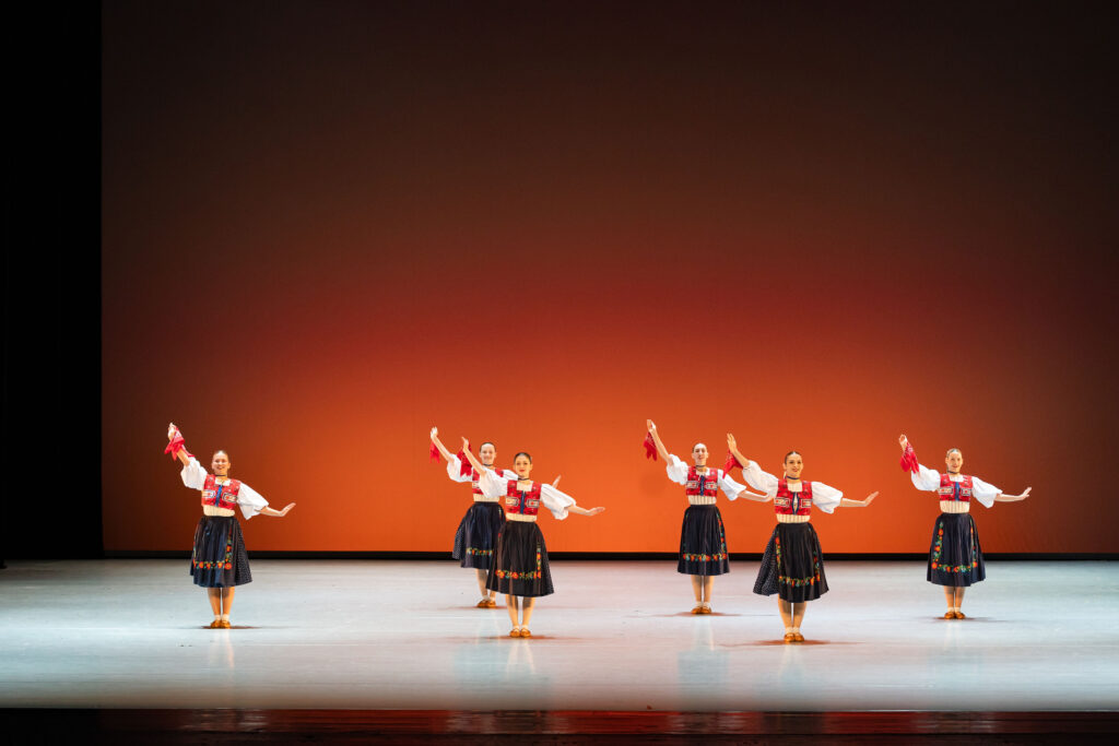 Ak máme hovoriť o kreovaní výrazovej zložky klasického tanečného umenia žiakov, chápania obsahu tanca, vyjadrenia jeho emócií a súhru v ženskom ansámbli, potom je Tanec Svanildy a jej priateliek z 1. dejstva baletu Coppélia od Léo Delibesa, ktorý sme v tento večer videli, tou najlepšou voľbou. Je to systematická, dlhoročná práca pedagógov, kreovať prostredníctvom tanca emócie – ktoré by sa dostali k divákom. A radosť je potom niekoľkonásobná, ak vidíte tento progres, rokmi vypracovaný, s čistými líniami, presnou prácou nôh a esteticky vkusnou plynulosťou pohybov. Svanilda v podaní I. Bartíkovej bola vypracovaná, nežná, no pritom s vlastným charakterom, prejavovala radosť z priateľstva – úsmevom, výrazom, mimikou, bola to zapamätateľné a individuálne stvárnenie tejto postavy.