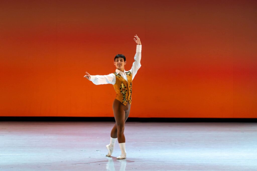 Ako som už spomenula vyššie, prím tohto roku si získala jednoznačne klasika. Vyspelosťou, technickou precíznosťou choreografií, no najmä – výberom diel. Boli to vždy ďalšie tance, ktoré si dokázali získať divákov. Pri klasike totiž často čelíte výrazným obmedzeniam, čo sa týka naštudovania repertoáru so žiakmi umeleckých škôl. Tentoraz sa však pedagogičky – Marina Častková – Zhelezniakova a Elena Chetvernya, nechali inšpirovať dielami, ktoré možno sú známe, no nie až tak frekventovane uvádzané na pôde škôl. Je to aj náročnosť, ktorá kladie vysoké technické i výrazové kritériá na žiakov, aj preto sa často nenachádzajú v absolventských koncertoch. No v tomto prípade si pedagogičky stanovili výzvu a zjavne sa im ju podarilo zdolať. Svedčilo o tom hneď ďalšie dielo – Fragment z baletu Tisíc a jedna noc Niny Nazirovej, významnej choreografky azerbajdžanského štátneho akademického divadla opery a baletu. Naštudovala ho Mg. Art. E. Chetvernya v obsadení: A. Skopintsev, A. Sorokroi a J. Kubala, žiak 7. B. ročníka. Hudbu k tomuto dielu vytvoril F. Amirov je známy tým, že spájal klasickú európsku hudobnú štruktúru s prvkami azerbajdžanského mugamu. Silná melodická línia predpokladajúca vycizelované legátové frázovania, spočiatku klasická, neskôr však invenčná inštrumentácia (perkusie, harfa, hoboj, klarinet), neobvyklá práca s rytmikou a kontrastná dynamika.