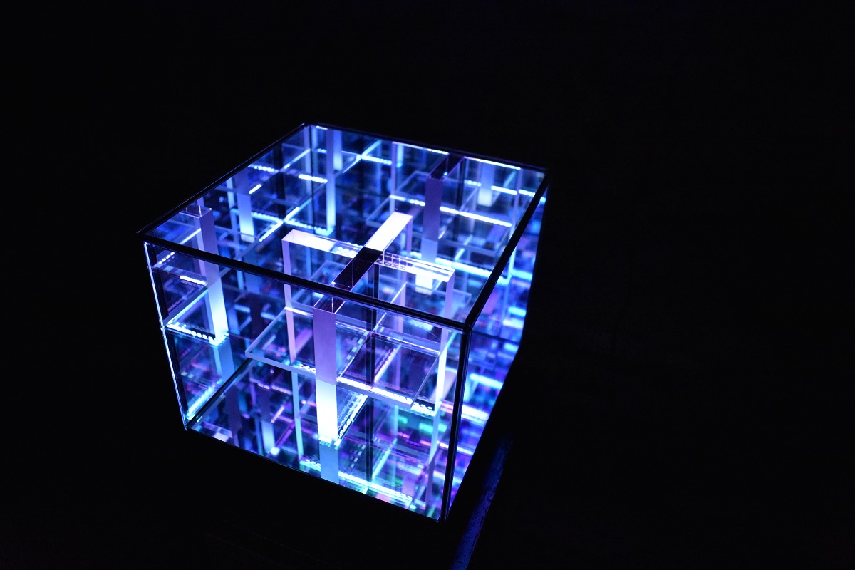 Provokujú k optickej hre, skúmaniu, ale aj k ponoru do myšlienkových súvislostí počiatku vesmíru. Estetické obrazce majú nielen svoju vizuálnu atraktivitu, technologickú presnosť, ale aj výtvarné znenie a emočnú tajomnosť. Nie je to len „kráľovstvo krivých zrkadiel“. Je to odkaz. V tom nás ešte viac ubezpečí inštalácia dvoch starých drevených debien, v jednej sú rozsypané mince, platidlo, dôkaz civilizácie, poklad, história; druhá nás hrou zrkadiel a svetiel zavedie po rebríku hlboko do neznáma, je to akási Cesta dolu (fyzická aj symbolická zároveň), ale aj klesanie do minulosti, padanie na dno, či pátranie po prapočiatku. Bizmutový kríž zas v prenesenom zmysle odkazuje na transformáciu a vnútorné prepojenie, ukotvenie v čase zmien; až hypnoticky meditatívne pôsobí svetelná inštalácia evokujúca šošovku oka, akési technologicky vyspelé „tretie oko“, ktoré nástojčivo nazerá do nášho vnútra. Súčasťou výstavy sú aj komorné sklené boxy, v ktorých sú situované sklené objekty, efekt ktorých závisí od uhlu pohľadu.