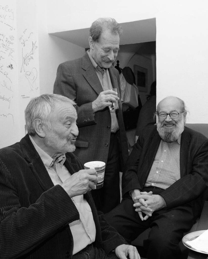 – Pavla Vilikovského a Tomáša Janovica počas uvedenia knihy Čarovný papagáj a iné gýče, ktorá získala ako prvá cenu Anasoft litera,