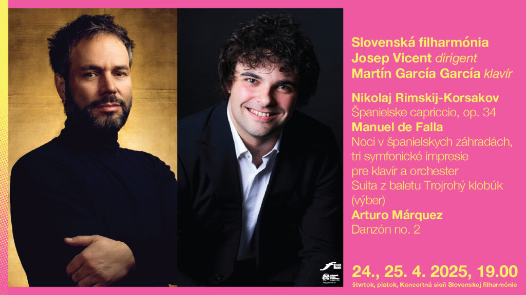 Po Veľkej noci budú koncerty pokračovať symfonickou dvojicou vo štvrtok a v piatok 24. a 25. apríla 2025 o 19.00. Po boku Slovenskej filharmónie vystúpia dvaja španielski umelci, ktorí sa v rámci našich sezón predstavia debutovo – dirigent Josep Vicent a klavirista Martín García García, ktorí d...