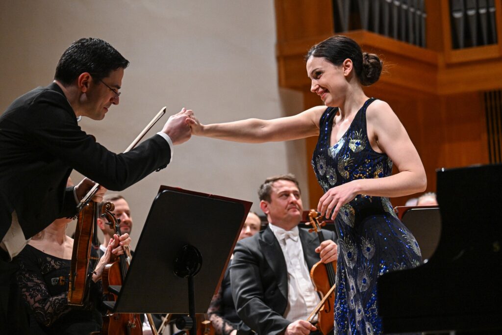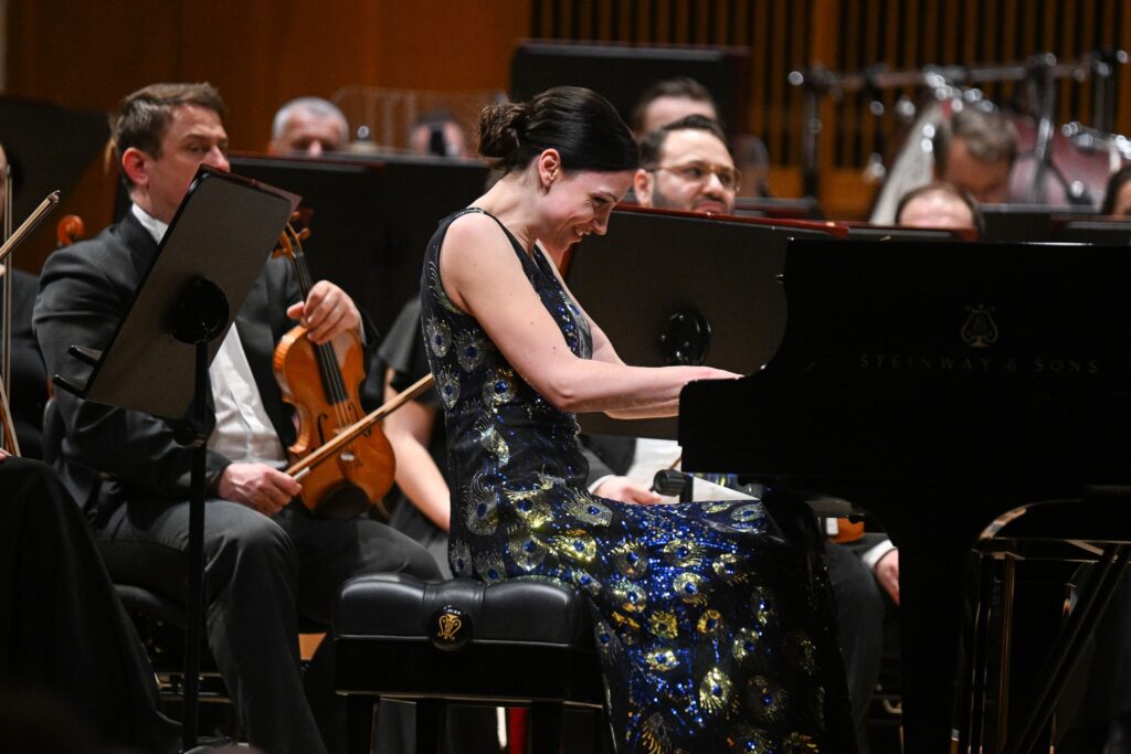 Skladba má v sebe silnú živelnosť, v čom sa orchester v niektorých častiach nechal uniesť a bolo vidieť, že klavír hrá, len úplne zanikol vo víre ostatných nástrojov. V úvodných tónoch neboli dychy úplne zohrané, ale podmanivá sila skladby urobila svoje a hráči rýchlo nastúpili na jednu vlnu. Naopak, klavír bol celú dobu zvonivý, lyrický a dynamický. Tón bol uvoľnený, ale pevný. Celú dobu z klavíra sršala energia – či už živelná a veselá, alebo mäkká a subtílna. Interpretka akoby sa rozprávala s klavírom. Ako prídavok zahrala strhujúcu, tretiu časť Prokofievovej siedmej sonáty pre klavír. Túto brilantnú a virtuóznu skladbu predniesla v jednom dychu a víre harmónií, tónov, akoby bola zahalená do oblaku hudby a nevnímala nič iné, a naopak, ja som mal pocit, že tam sedím s ňou sám a hrá len pre mňa.