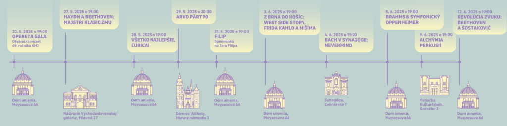 Do festivalového abonentného cyklu ŠFK zaradila OPERETA GALA pod taktovkou Tomáša Braunera v hviezdnom obsadení Kateřina Kněžíková & Adam Plachetka aj symfonické narodeninové prekvapenie VŠETKO NAJLEPŠIE, ĽUBICA! pre skladateľku Ľubicu Čekovskú. Diriguje Andreas Ottensamer. Filharmónia Brno pricestuje s koncertom Z BRNA DO KOŠÍC: WEST SIDE STORY, FRIDA KAHLO A MIŠIMA pod taktovkou šéfdirigenta Dennisa Russella Daviesa.