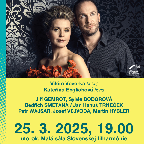 V utorok 25. marca 2025 privítame v Malej sále Slovenskej filharmónie dvoch popredných českých interpretov s medzinárodným presahom. Hosťami cyklu Komorná hudba budú hobojista Vilém Veverka a harfistka Kateřina Englichová, obaja poprední sólisti, ktorí už viac ako dvadsať rokov tvoria spoločne ko...