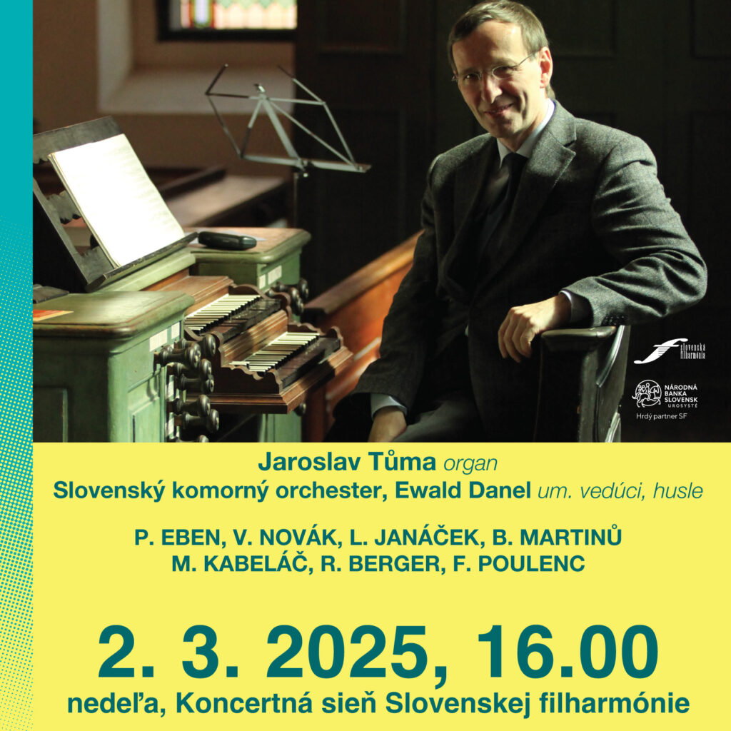 V nedeľu 2. marca o 16.00 h zaznie v Slovenskej filharmónii druhý organový recitál v aktuálnej 76. koncertnej sezóne. Predstaví sa na ňom český organista a pedagóg Jaroslav Tůma. V slovenskej premiére bude uvedená Nostalgia pre husle a organ Romana Bergera, ktorá zaznie v interpretácii Ewalda Da...