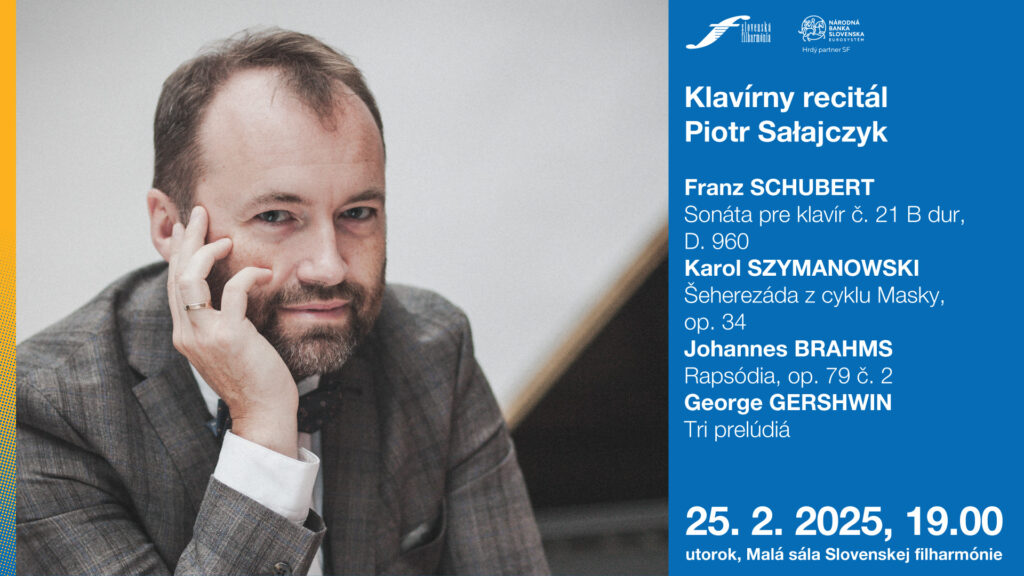 Piotr Sałajczyk do programu zaradil Šeherezádu Karola Szymanowského, jedného z najuznávanejších poľských skladateľov. Šeherezáda je súčasťou klavírneho cyklu Masky, op. 34, ktorý skladateľ zložil medzi rokmi 1915 - 1916, inšpirovaný zahraničnými cestami. Hudobný portrét perzskej princeznej Šeherezády, rozprávačky slávnych príbehov Tisíc a jedna noc, vyniká premenlivosťou hudobných nálad. Dve rapsódie, op. 79 Johannesa Brahmsa vznikli v roku 1879 a patria medzi jeho najhrávanejšie klavírne diela. Popularitu si získali už počas skladateľovho života. V interpretácii Piotra Sałajczyka zaznie Rapsódia, op. 79 č. 2. Koncert uzavrú Tri prelúdiá Georga Gerschwina z roku 1926 ktoré sú krásnym príkladom vplyvu jazzovej hudby v klasickom prostredí. Gershwin sám dielo nahral v roku 1928 pre Columbia Records.