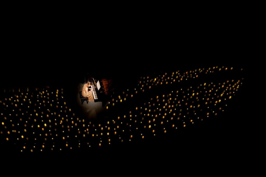 Na koncerte pri sviečkach bol divákovi dopriaty nádherný pohľad na pódium – po celom pódiu, okolo klavíra, boli rozmiestnené horiace sviečky. Bola to okúzľujúca atmosféra, umožňujúca vhodné prostredie pre vnímanie hudby. Vizuálne mocný, dychberúci, no zároveň monotematický obraz je presne to, čo Einaudiho hudba potrebuje. Vďaka nemu sa dokážete od okolia odpútať a vnímať len hudbu samotnú.
