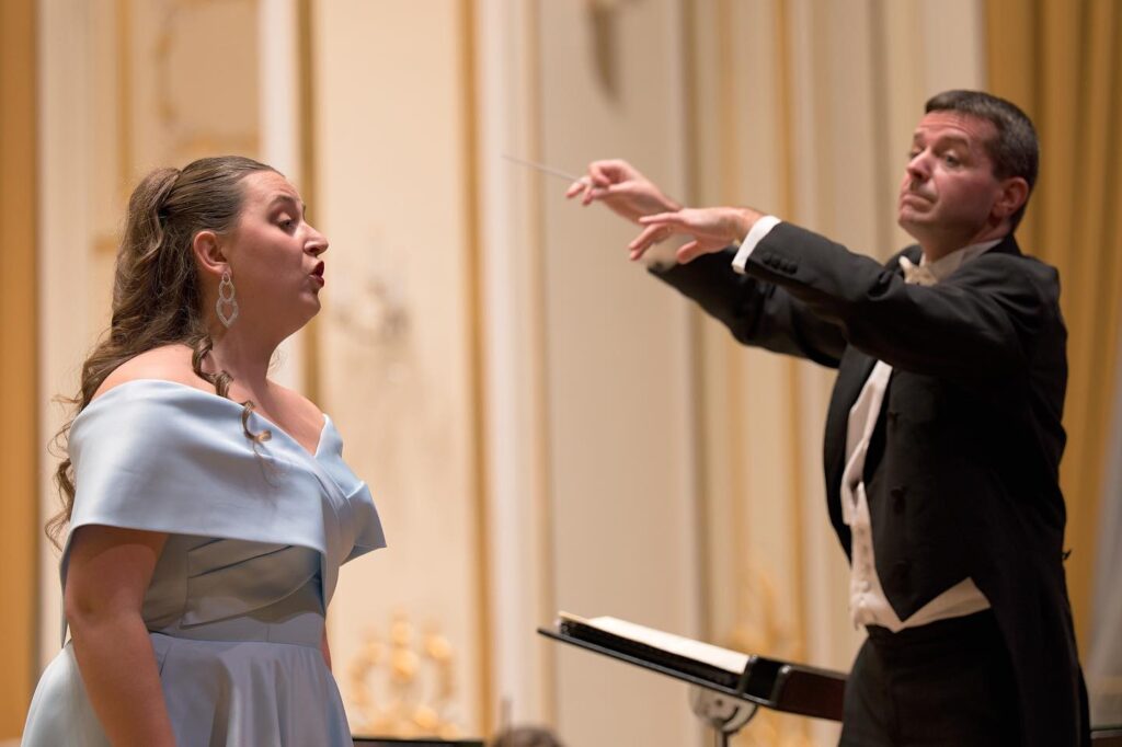 Nasledoval recitatív a ária Micaely C’est des contrebandiers… Je dis que rien, z 3. dejstva Bizetovej opery Carmen v interpretácii sopranistky Alžbety Rehákovej, poslucháčky magisterského štúdia na VŠMU v speváckej triede Mgr. art. Dagmar Podkamenskej Bezačinskej, ArtD.. Reháková má na pódiu dostatočné skúsenosti a v súčasnosti sa venuje naštudovaniu postavy Lady Billows v opere Albert Herring od Benjamina Brittena, ktorú Katedra spevu uvedie v máji roku 2025. Jej prejav bol sebaistý, zároveň prirodzený. Má peknú farbu hlasu, vyvážené registre a zmysel pre vystavanie vnútornej drámy. Objemnosť jej hlasu dokázala Veľkú koncertnú sieň Slovenskej filharmónie zaplniť, je preto predpoklad, že sa v budúcnosti veľmi dobre uplatní aj na veľkých pódiách. Zatiaľ síce chýba vypracovaný, kultivovanejší prejav vo výškach, no Reháková má všetky dispozície na to, aby sme sa ho dočkali. Priznám sa, trochu ma zamrzelo, že Slovenská filharmónia nevyvinula dostatok úsilia, aby hrala s väčším nasadením (a najmä v dychových partoch čisto).