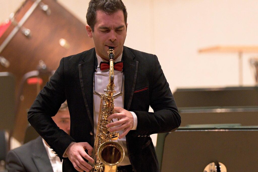 Na záver tohto večera znel Koncert pre saxofón a sláčikový orchester, op. 109 Alexandra Glazunova – klasika pre tento nástroj, po ktorom saxofonisti radi siahajú, až kým sa im neobohrá, aby začali objavovať na nepreskúmanom poli nový repertoár. Dielo sme počuli v interpretácii Andreia Simanchuka, laureáta viacerých medzinárodných súťaží. Mladý umelec začal hudbu študovať v Minsku a na Slovensku pokračoval v štúdiu u prof. Alexandra Stepanova na Fakulte múzických umení Akadémie umení v Banskej Bystrici. Magisterské štúdium ukončil v roku 2024 s cenou rektora a absolvoval študijný pobyt v Katowicach. Ako sólista koncertuje na Slovensku i v zahraničí, je členom viacerých komorných formácií a spolupracuje s mnohými orchestrami. Pôsobí aj pedagogicky na Konzervatóriu Jána Levoslava Bellu v Banskej Bystrici.
