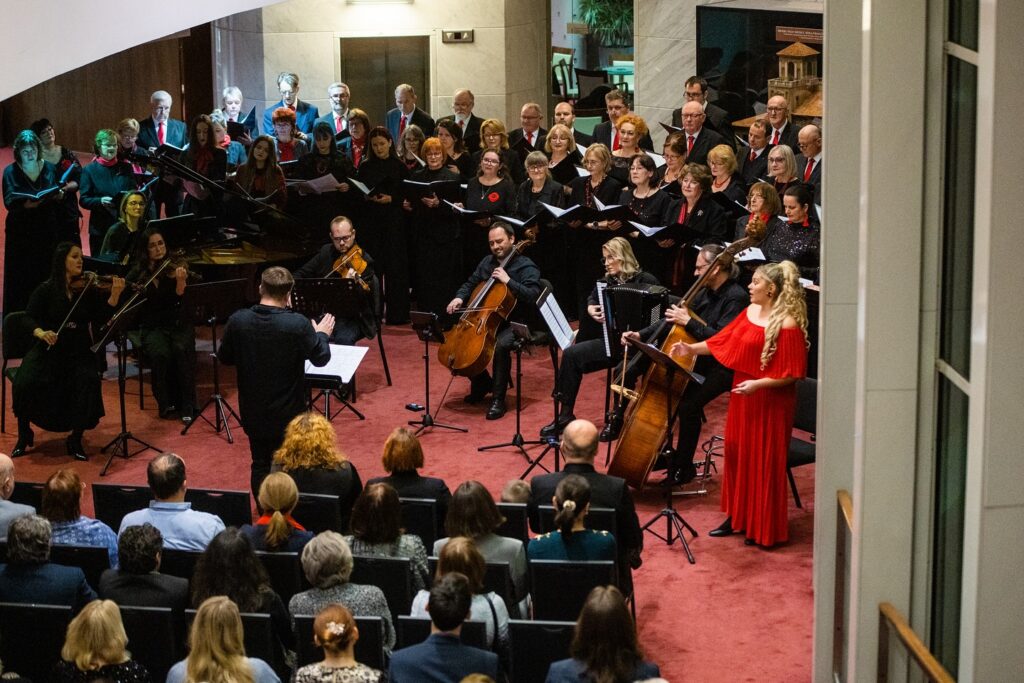 Milada Synková nás opustila 19. januára 2024 a presne rok od tohto dátumu sa uskutočnil koncert, ktorý nám ju pripomenul. Azda by bolo vhodné zvoliť aj reprezentatívnejšie priestory ako foyer v novej budove SND, verím tomu, že v divadle by sa pri dobrej vôli našli. Ani o diváckom nezáujme nemôžeme hovoriť – vyčlenené stoličky pre publikum boli do posledného miesta zaplnené – až na prvý rad, vyhradený pre hostí a zamestnancov divadla. Tých reprezentoval riaditeľ Opery SND Rastislav Štúr. Tak trošku smutný pohľad vyvážil program, ktorý interpretoval Spevácky zbor mesta Bratislavy, ktorého bola Milada Synková oduševnenou členkou.