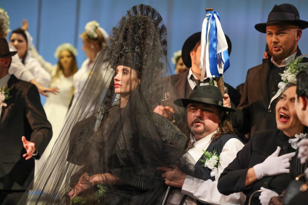 V piatom obraze zaznel zreteľný odkaz na úvod diela, ktorý prebrala flauta (technicky čistá, výrazovo s odkazom na Krútňavu v jej predohre). Hudobný monológ Titusza Tóbisza ako Ondreja, ktorý trpí halucináciami (bol to strhujúci výkon speváka), bol obrazom človeka, ktorý je na pokraji zúfalstva. Jeho výkriky, náhle forte, ozveny hlasu, boli sprevádzané rastúcou hudbou i dynamikou orchestra, presne načasovanou, rytmicky precíznou, s hutnými symfonickými plochami. Známy popevok sa ozval aj v ženskom zbore, interpretačným výkonom presvedčivý – intonačne i dynamicky, akoby prichádzal z diaľky, efekty mocnejúcich hlasov zvýraznili výčitky svedomia Ondreja. Za mňa (okrem katarzného momentu diela) to bola rozhodne emočne najsilnejšia scéna diela. Hoci logicky by sme po tomto obraze očakávali priznanie a trest, Suchoň v záverečnom obraze venuje začiatok opisu dediny. Oslavy sa skončili odhalením vraha, zároveň samotný Ondrej doznal svoju vinu – „chcem sa vám vyspovedať“. Dráma v orchestri bola vypovedaná s intenzitou, v momente priznania jednej z hlavných postáv orchester utíchol do temných, nízkych polôh drevených dychov. Odpustenie starého Štelinu prinieslo katarziu s presvetlenou, inštrumentálne oprostenou hudbou, aby postupne rástla – aj s veľkolepým zborovým partom.