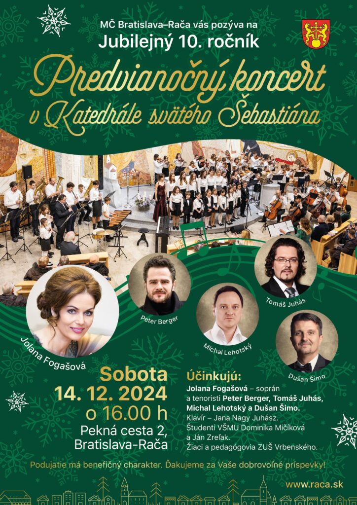„Verím, že krásna hudba bude opäť balzamom na vašu dušu v tomto predvianočnom čase a prinesie vám čistú, úprimnú radosť na koncerte a tiež na streame, ktorý sa bude vysielať na prvý sviatok vianočný.“ Koncert si teda budú môcť pozrieť v zázname na sociálnych sieťach aj diváci z iných miest dňa 25. decembra 2024 o 15:00h. Adventný koncert pre všetkých prinesie Mestská časť Rača, stránka osobného profilu Jolany Fogašovej a taktiež portál mojakultura.sk na Facebookových stránkach a na YouTube.