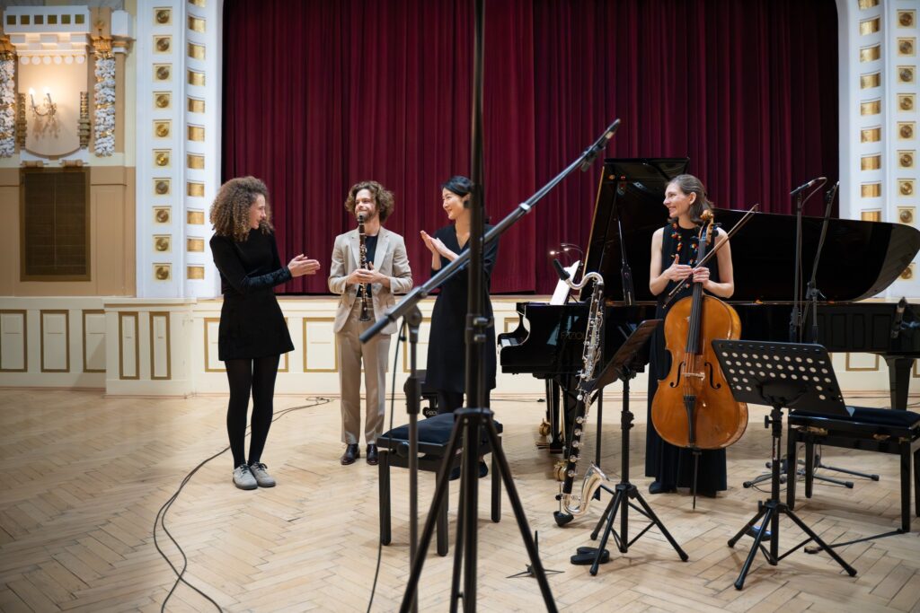 Tretí z koncertov (10.11.2024) nepochybne prilákal pozornosť publika aj pre jedného z členov Tria Catch – klarinetistu Martina Adámeka. V uplynulých rokoch sme ho v Bratislave počuli niekoľkokrát, jeho vášeň pre súčasnú hudbu, ktorú interpret prechováva už od takpovediac detských čias, vyústila aj v tejto zostave. Formáciu dopĺňajú švajčiarska violončelistka Eva Boesch a klaviristka Sun-Young Nam, narodená v Južnej Kórei, pôsobiaca v Darmstadte. Elitné trio si priam pýtalo elitný repertoár.