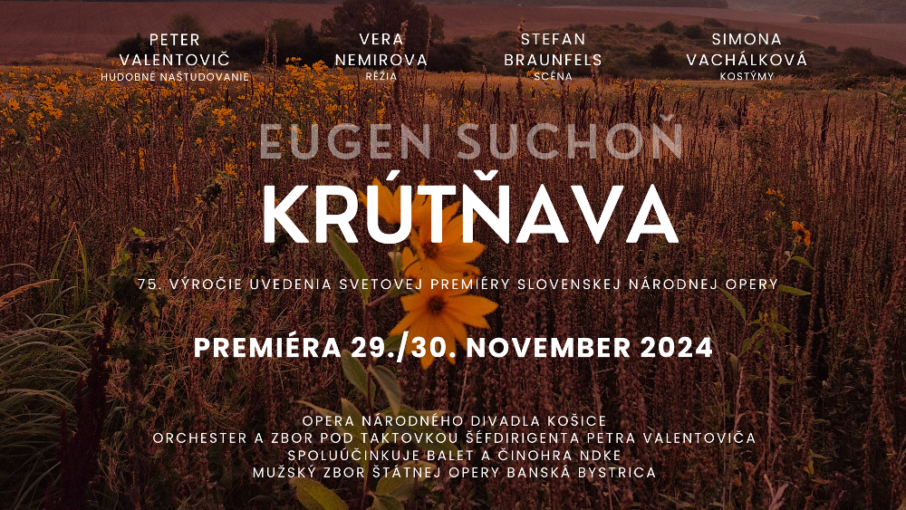 Minulý rok uplynulo 115 rokov od narodenia známeho hudobného pedagóga a skladateľa Eugena Suchoňa. Prvá premiéra Opery NDKE v novej sezóne bude jeho poctou. Posledná premiéra tejto významnej slovenskej opery bola v Košiciach v roku 1996 a 10. decembra uplynie presne 75 rokov od svetovej premiéry v 1949. Krútňava sa na pódium vracia po 28 rokoch.