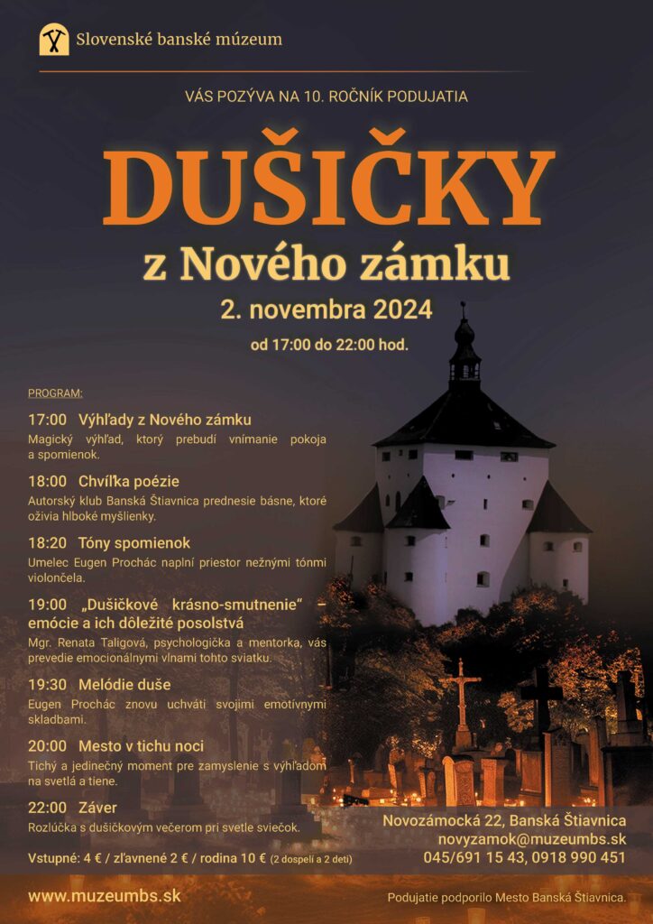 Tento rok sa v Banskej Štiavnici uskutoční už 10. ročník podujatia Dušičky z Nového zámku“, ktoré prinesie zaujímavý program. Jedinečný dušičkový večer si budete môcť vychutnať v priestoroch ikonického Nového zámku od 17:00 do 22:00 hodiny. Hlavný program pre návštevníkov bude pripravený od 18:0...
