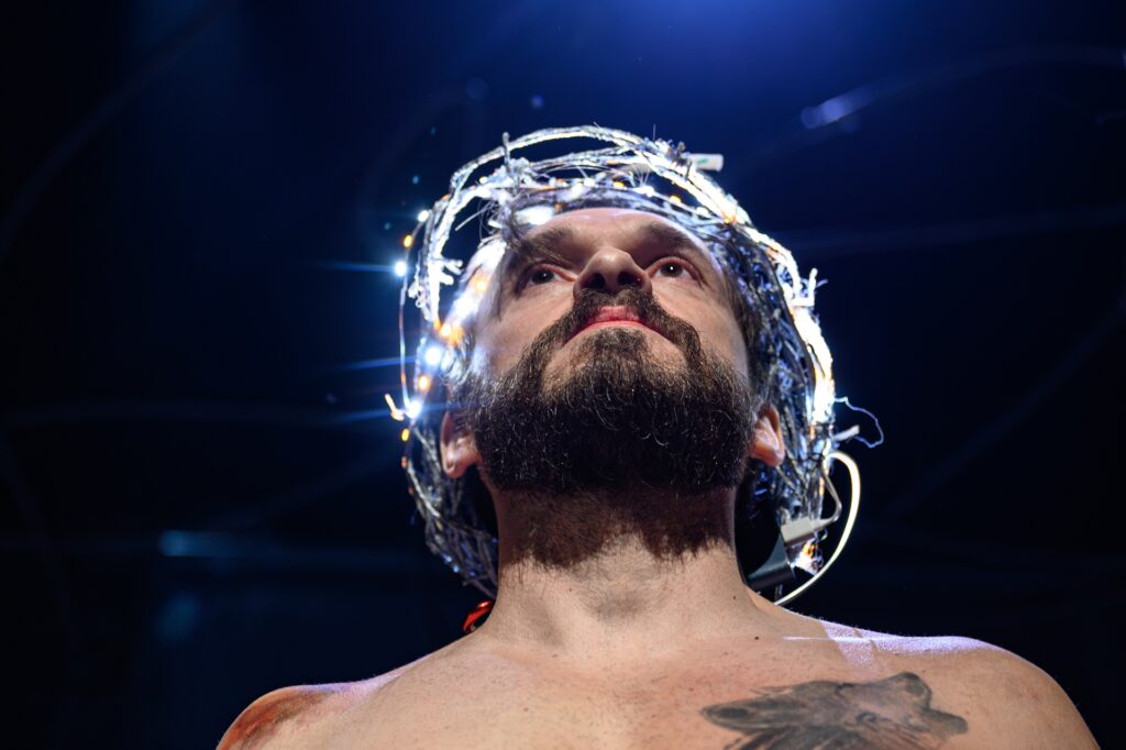Daniel Fischer a Adam Ilyas Kuruc za hudbu v inscenácii Ježiš z Montrealu autora Denysa Arcanda v réžii Jána Luterána, Činohra Slovenského národného divadla, Bratislava