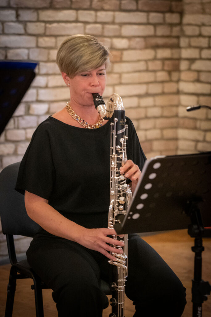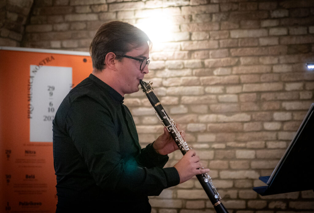 V ďalšom programe sme počuli skladbu maďarského autora Jánosa Gyulai Gaála, Négy Romantikus játék, ktorej úvod, sa, paradoxne, začal v hľadisku. Z publika sa totiž ozvala nahrávka Carmen z koncertu v komárňanskej pevnosti. Keď už neznalosť s technikou vyrušila tento koncert, aspoň sme si úvodné číslo pripomenuli – Gaáloovo dielo nadväzuje bodkovaným rytmom na tento typ temperamentu. K figúre basklarinetu v bodkovanom rytme sa postupne pridávali ďalšie nástroje v melodických líniách, aby vytvorili hustú, zložitú sieť polyfónie. Nie však natoľko, aby sa stala nezrozumiteľnou. Skladateľ v pravú chvíľu tok hudby prerušil, aby lineárne stavaný part nahradil rytmus. Po rýchlej časti Allegro con leggierezza (hráči vhodne zvolili tempo, aby vynikli jednotlivé hlasy nástrojov) nasledovala časť Presto. Aj v nej sme obdivovali tón klarinetu – tichý, introspektívny, ktorý v strede tejto vety tvoril kontrast voči objemnejšiemu zvuku.