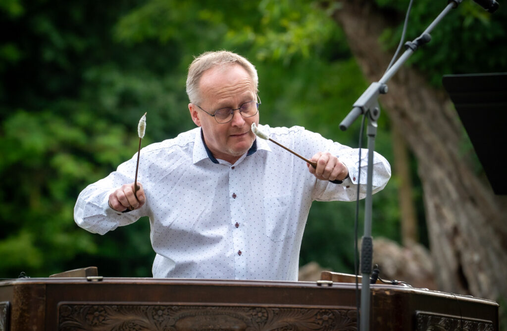 Osobne ma veľmi potešilo, že ste zvolili aj dielo nášho huslistu, skladateľa, aranžéra Stana Palúcha. Jeho Božská flauta je pomerne rozsiahla kompozícia s jemnou introdukciou, sólo Panovej flauty má prekrásnu melodickú líniu, čo je však podstatné, od začiatku počujeme folklórne vplyvy v tejto kompozícii a charakteristické ozdoby. Je to meditácia, ktorú podporuje nielen sólový nástroj, ale i ansámbel – ten budete tvoriť Vy s cimbalom. Dokáže jeden cimbal nahradiť orchester?