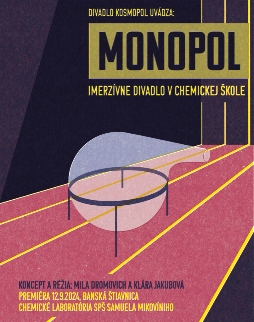 Po úspešnej spolupráci sa pod dramaturgiu scenár a réžiu Monopolu znovu podpísalo tvorivé duo Mila Dromovich a Klára Jakubová. Za réžiu inscenácie Kosmopol získali v roku 2020 Cenu Nadácie Tatra banky v hlavnej kategórii Divadlo. V imerznej polydráme Monopol je divák znovu ponorený v paralelných dejových líniách v školských triedach a na chodbách bývalých chemických laboratórií, ktoré sa premieňajú na zmenšený obraz historickej Banskej Štiavnice. Tento raz má na výber až z 13 -tich lokácií, na ktorých stretáva 22 hercov a viac ako 30 postáv. Diváci sa v predstavení slobodne pohybujú a skladajú si vlastnú mozaiku príbehu dvoch rodín, učiteľskej a mäsiarskej, ktoré sú nútené žiť v jednej bytovej jednotke. Ich osudy sa tak napriek odlišnosti a vzájomnej antipatii navzájom prelínajú, eskalujú do nečakaného vyústenia.