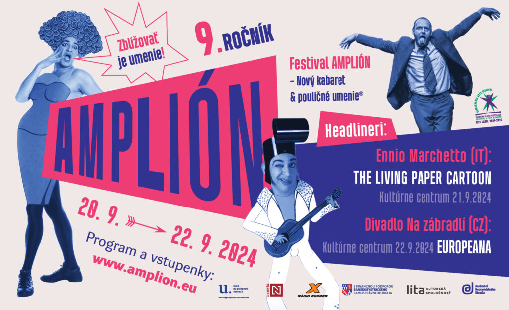 Festival Festival AMPLIÓN – Nový kabaret & pouličné umenie 2024 bude od 20. do 22.9. v Banskej Štiavnici. Kompletný program nájdete na stránke.