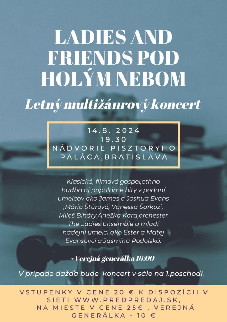 Komorný súbor Ladies Ensemble pod vedením jeho zakladateľky a prvej huslistky Anežky Kara sa rozhodli uskutočniť letný open air koncert 14. augusta. Koncert pod holým nebom sa realizujú na prianie fanúšikov tohto orchestra. Po galakoncerte k 10.výročiu, ktorý sa konal v novembri hudobníčkam diváci ešte celé týždne písali svoje dojmy a spätnú väzbu, že dávno nezažili v Bratislave taký krásny, dojemný koncert: „Písali nám, že z neho ešte dlho žili. Rozmýšľala som či mám opäť riskovať urobiť koncert bez sponzorov, ale idem vo viere, že sa to zase vypredá,“ hovorí pre náš portál manažérka a huslistka Anežka Kara.