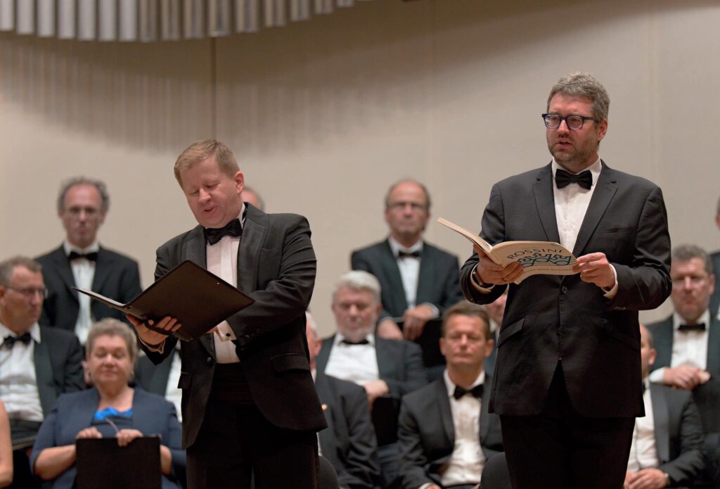 Hosťujúci zbormajster Lang bol oporou zboru, detailný, s úspornými gestami. Jediné, čo možno vytknúť v úvodnej časti, bolo málo kontemplácie v polyfonicky vedenom úseku Kyrie, kde by podstatne viac vynikli jednotlivé hlasy. Tak isto organ zanikal – v miestach, kedy mohol ako harmonická opora zasvietiť, ho skôr nebolo počuť a doslova ste ho museli hľadať, najmä v molových častiach – zvýraznením siedmeho stupňa v speve, v prechodoch, ktoré tvorili priam zvukovo omamné efekty. Očarujúca bola časť Christe eleison označená Rossinim ako „sotto voce“ – na rozdiel od kontrastnej prvej, ktorá znela s postupne stúpajúcou intenzitou, aj eleison znelo v rovnakej dynamickej hladine. Je to dvojitý kánon, plný kontemplácie – nesmierne vydarený v tento večer. Po ňom sa opäť vrátila pôvodná hudobná téma Kyrie. Je plná nezvyklých harmonických postupov (oscilácia medzi molovými a durovými tóninami je prenikavá a frekventovaná), ktoré vás niekedy až prikovali k sedadlu. Skladateľ často opakoval kľúčové slová a vždy im dokázal dať v hudbe a speve obsah.