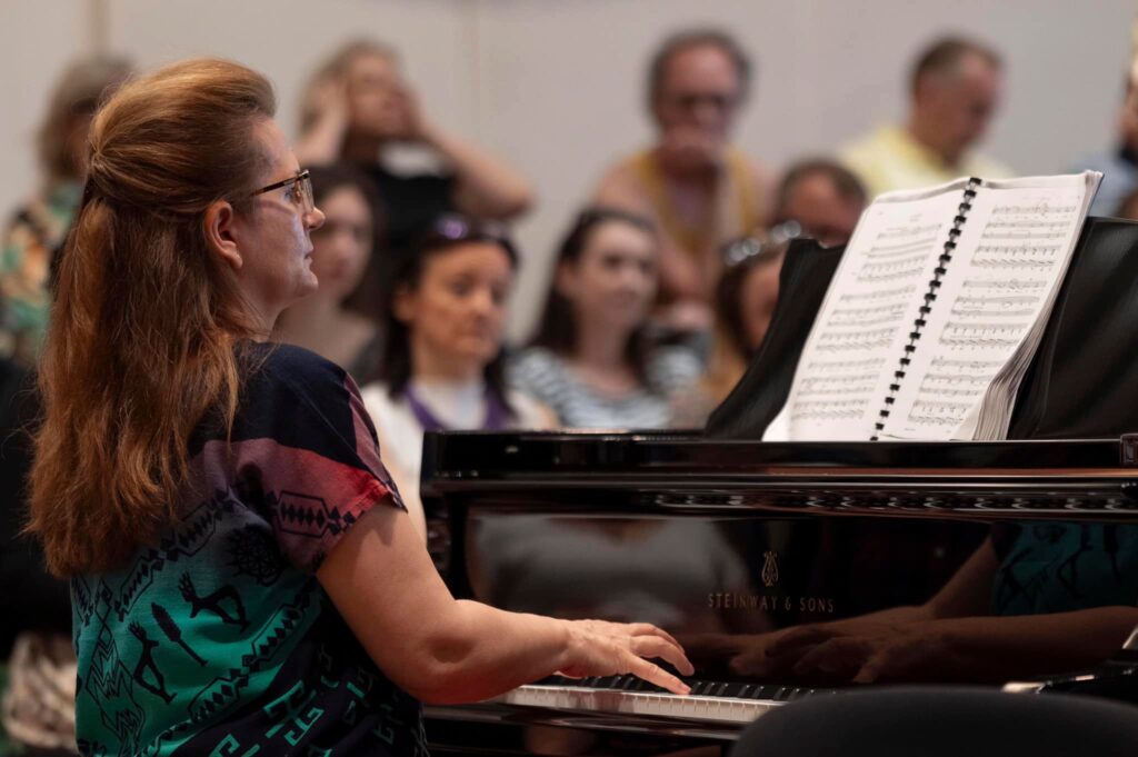 Prekrásne, vyvážené piána zboru boli dychvyrážajúce, tak isto citlivé spomalenia na konci fráz – boli pekne zaoblené, vytvarované. Klaviristka so spevákmi rytmicky a dynamicky dýchala spoločne, ako jeden organizmus. Bola vynikajúco pripravená, technicky, ale i výrazovo. Spoločné dýchanie klavíra dokáže so spevákmi len málokto, no práve táto klaviristka je excelentnou korepetítorkou už roky, aj tým najväčším operným sólistom – vie presne, ako sa naladiť na spoločnú „vlnu“ so spevákmi.